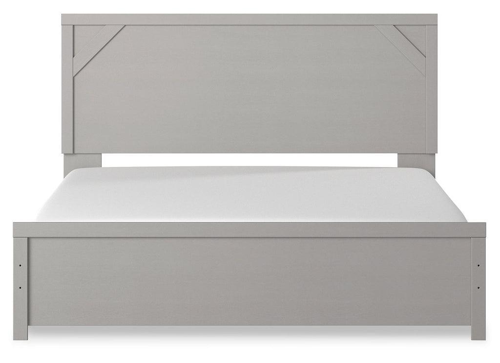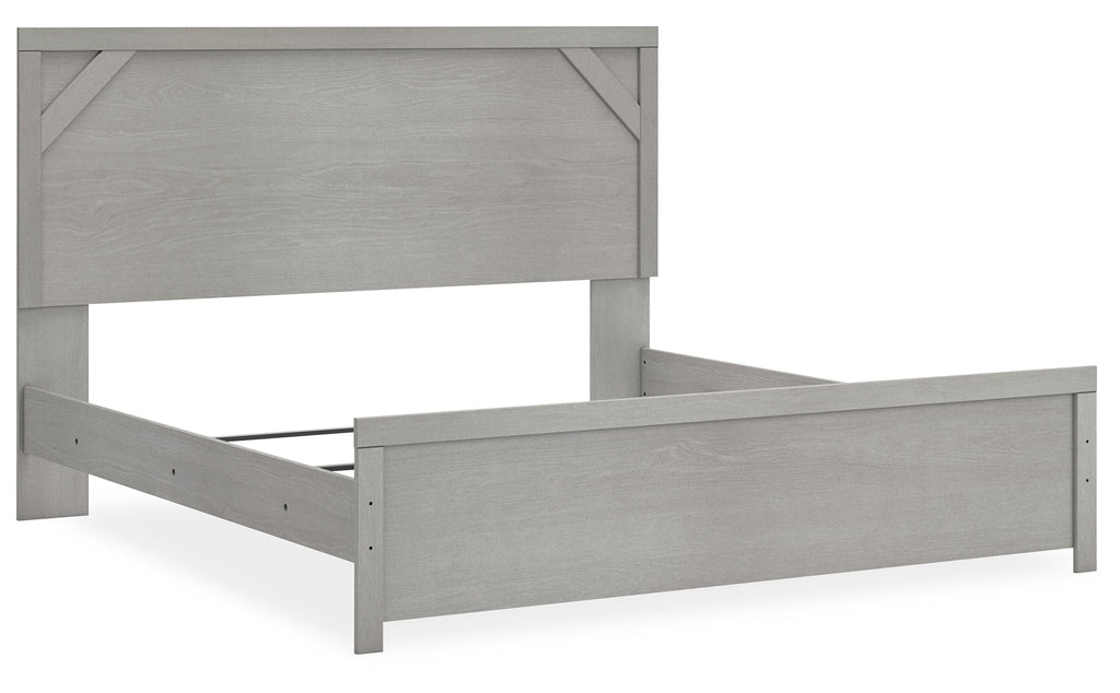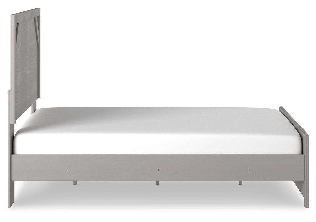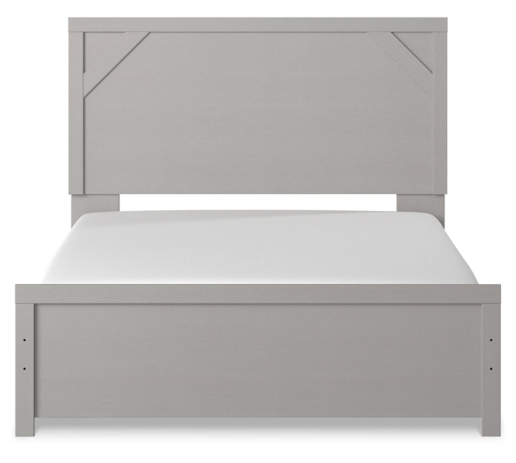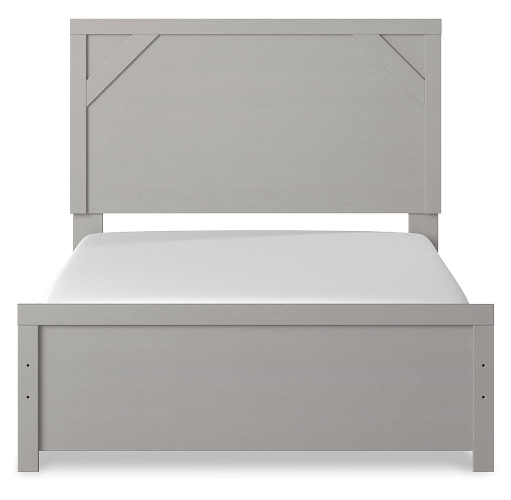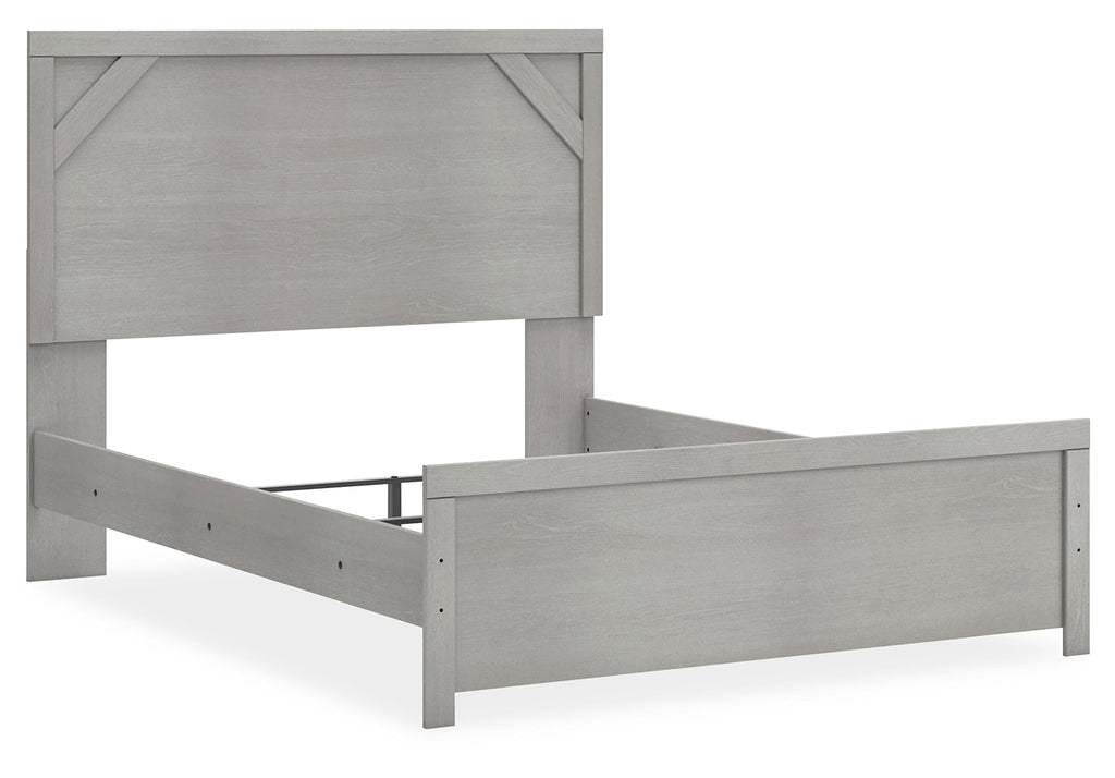 Cool, clean and casually modern. This full panel bed’s wispy dove gray finish sets the tone for your calming sanctuary. Framed elements and cross-brace accents add dimension and authenticity to the bed’s simply stunning profile.