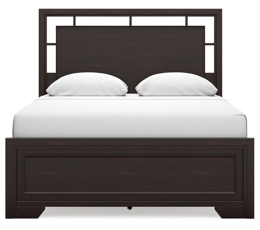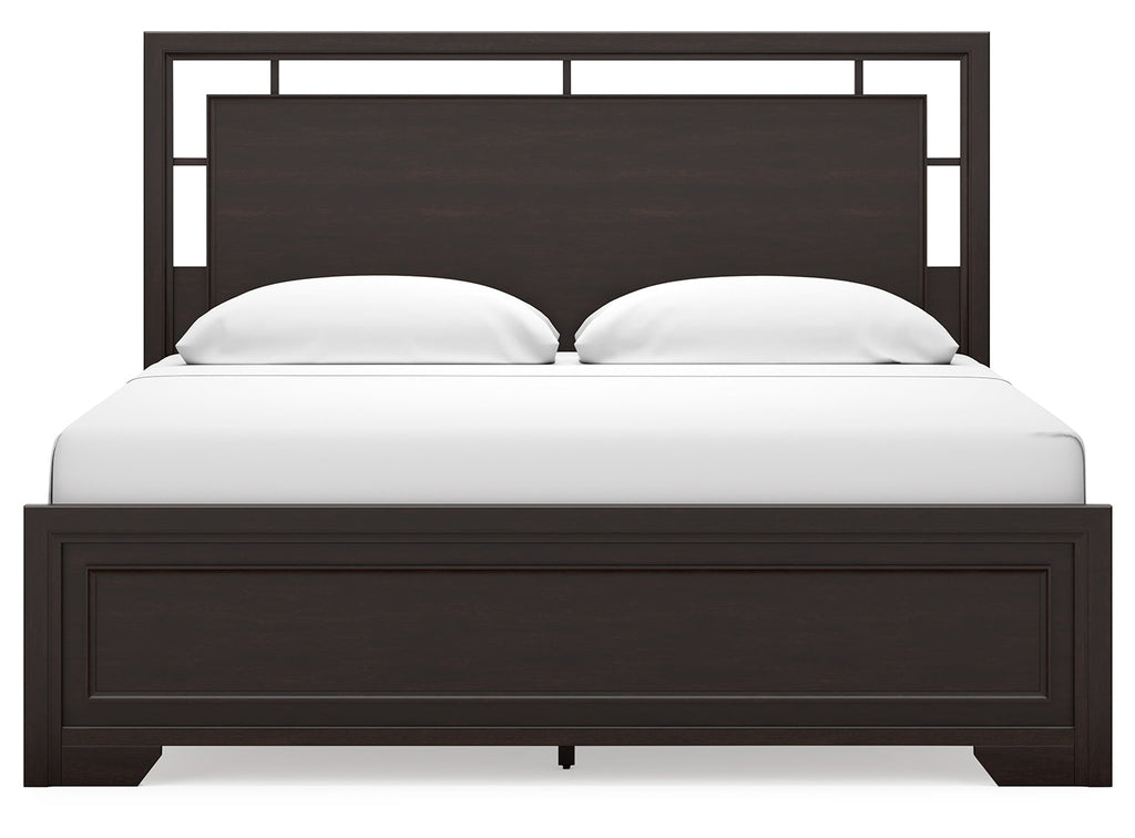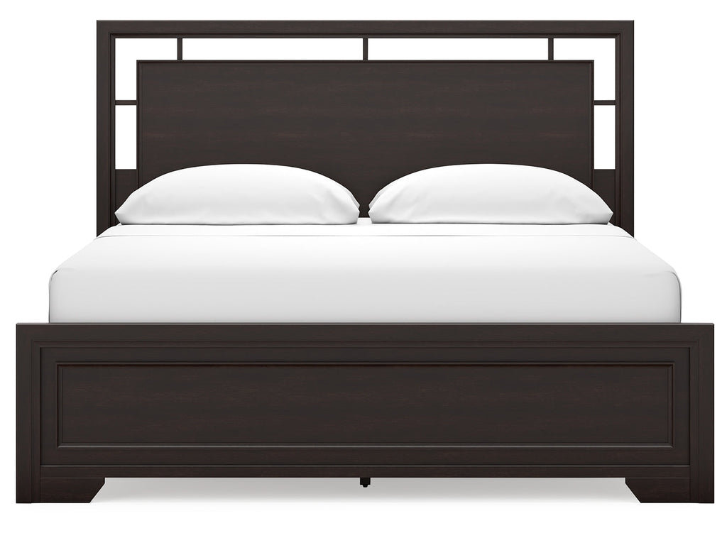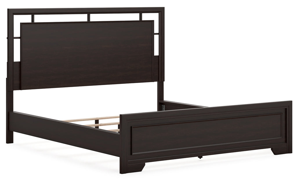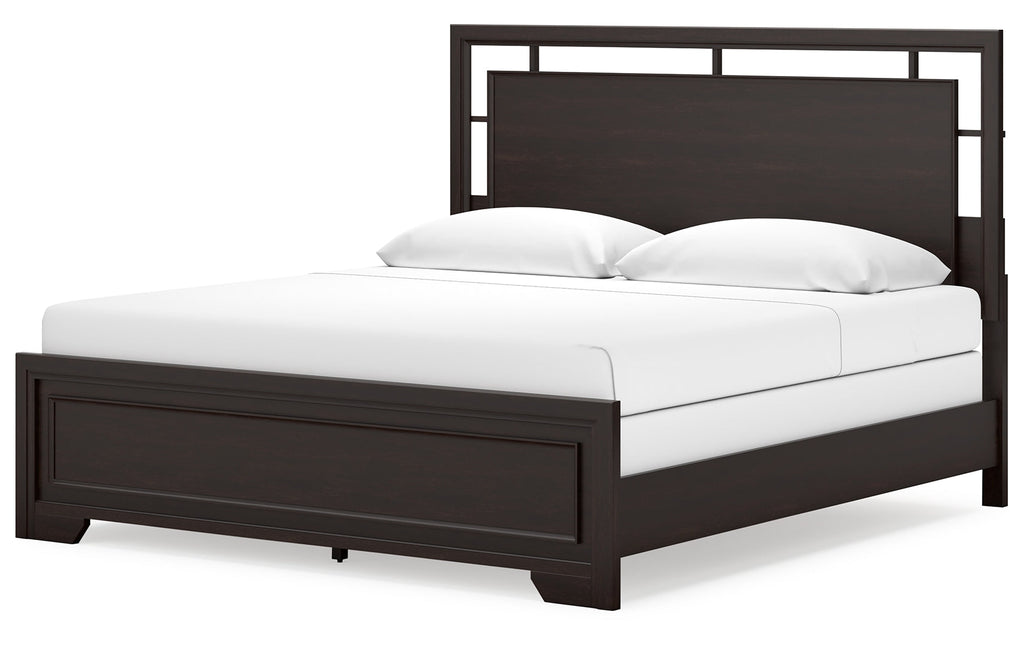 If you like the idea of a richly versatile transitional look that feels fresh and contemporary—with a timeless sensibility—then feast your eyes on this California king panel bed. The modern headboard's floating panel design blends with the classic-inspired picture frame footboard to create a stunning look that's neither too stuffy nor too trendy. Such a refined way to wake up your bedroom style.