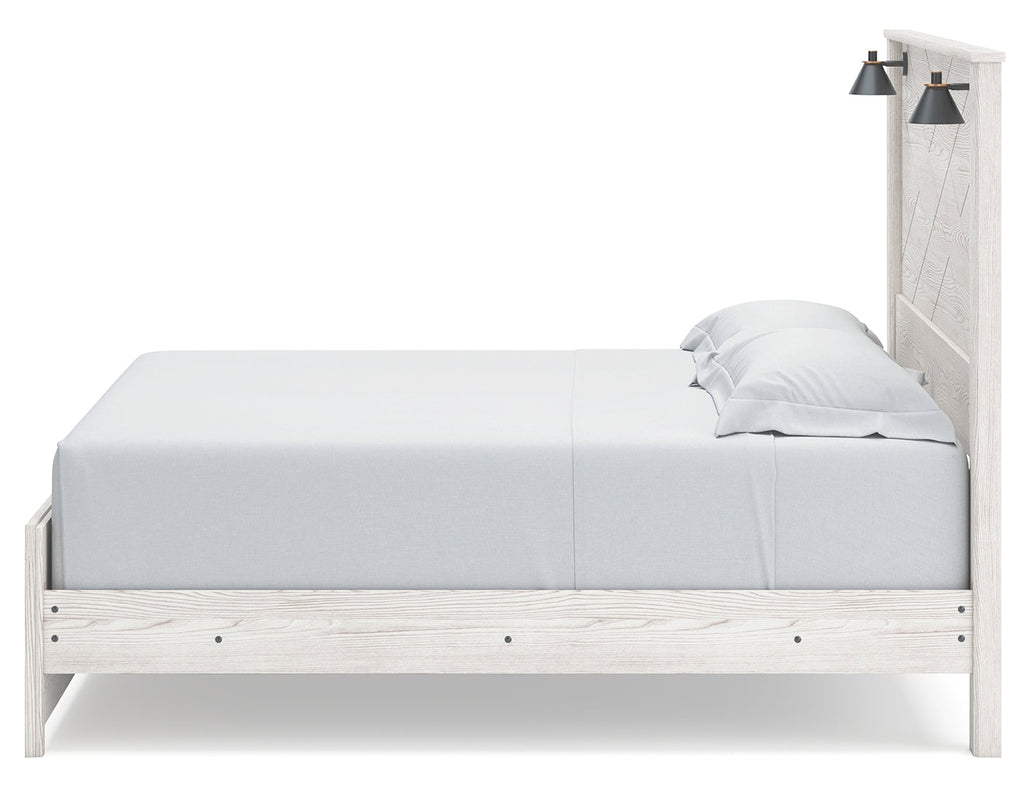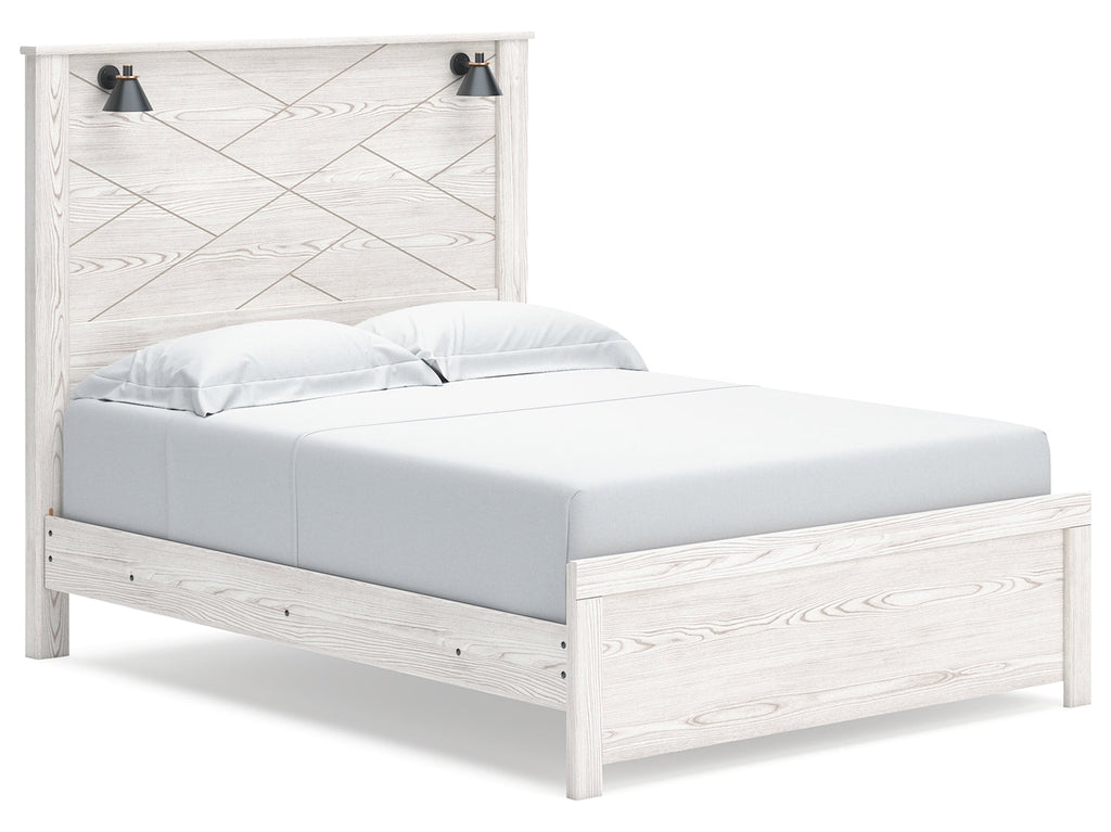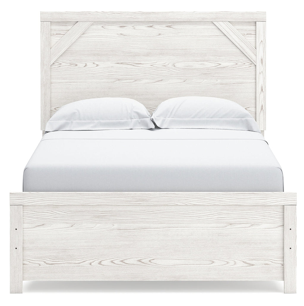 Cool, clean and casually modern. This full panel bed’s wispy whitewash finish sets the tone for your calming sanctuary. Framed elements and cross-brace accents add dimension and authenticity to the bed’s simply stunning profile.