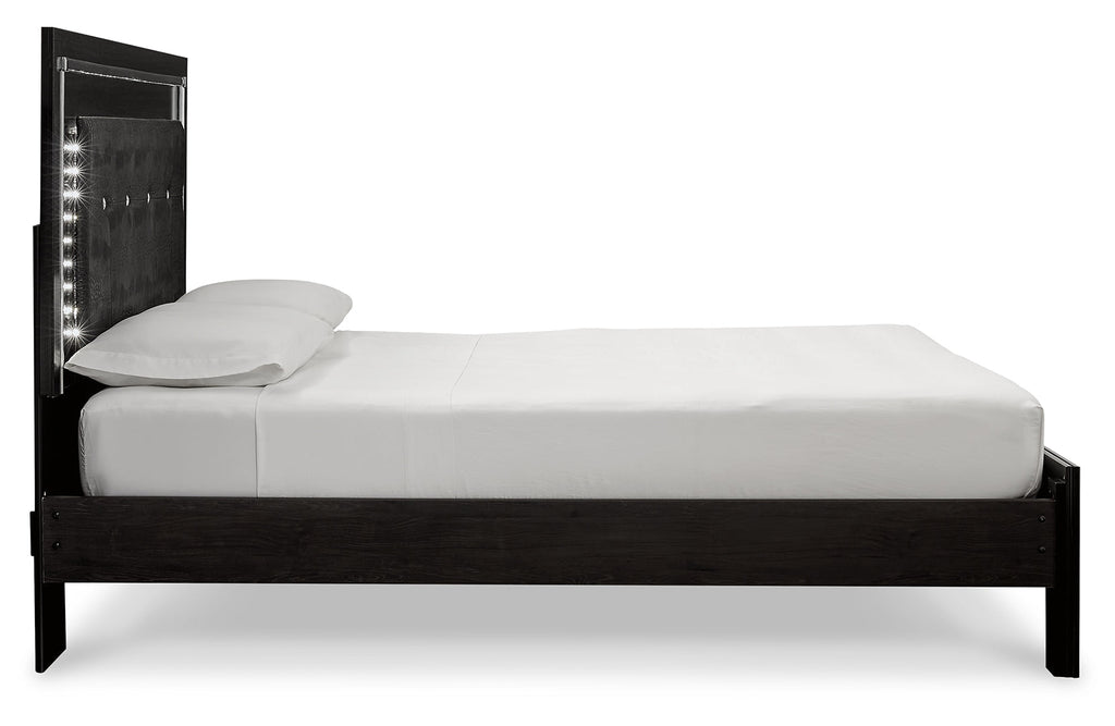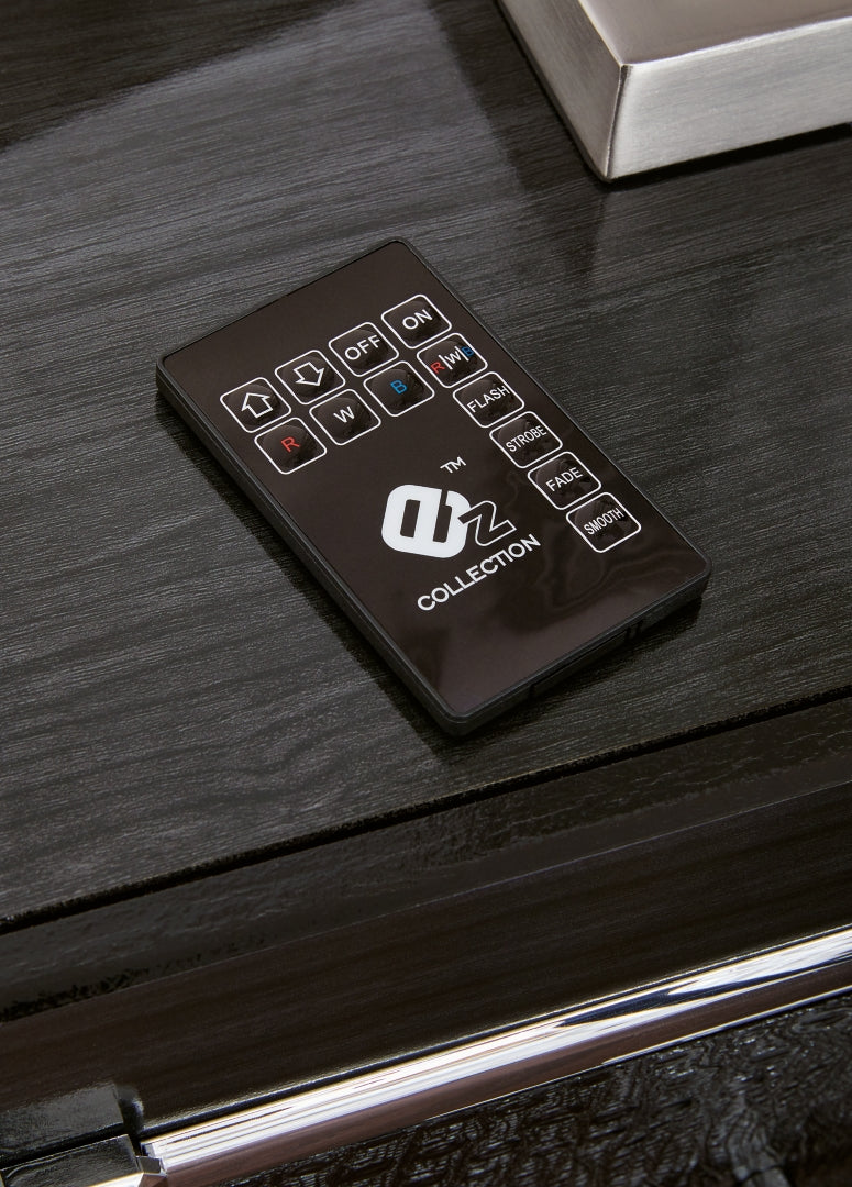 Rest easy. The luxurious look you’ve been dreaming of is yours for the taking—at a price sure to put you at ease. This striking storage bed brings a sense of old Hollywood with a contemporary flair. A deep, dark finish, faceted chrome-tone accents and LED lighting exude Hollywood-chic style to the max. Padded windowpane-stitching on the sleek, black upholstery infuses a sumptuous look that’s upscale and indulgent, and utterly on trend. A wireless remote allows you to control the color and brightness to suit the mood.