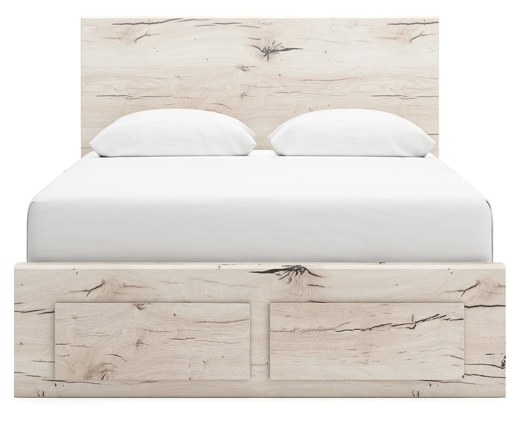 - Includes panel headboard, storage footboard, 2 under bed storage units and roll slats
