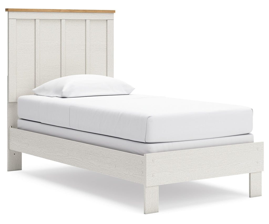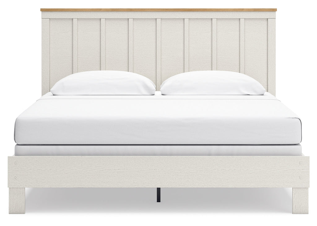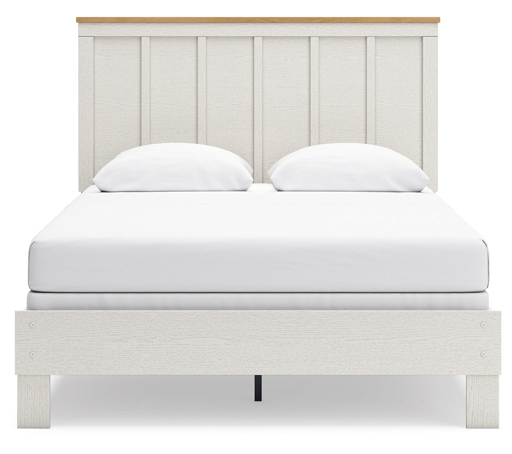 Create a serene countryside retreat with this full bed. A two-tone design effortlessly adds farmhouse style, while the clean-lined panel headboard enhances its charming appeal. Looking for furniture that offers a peaceful escape from your daily routine? This bed is just what you need.
