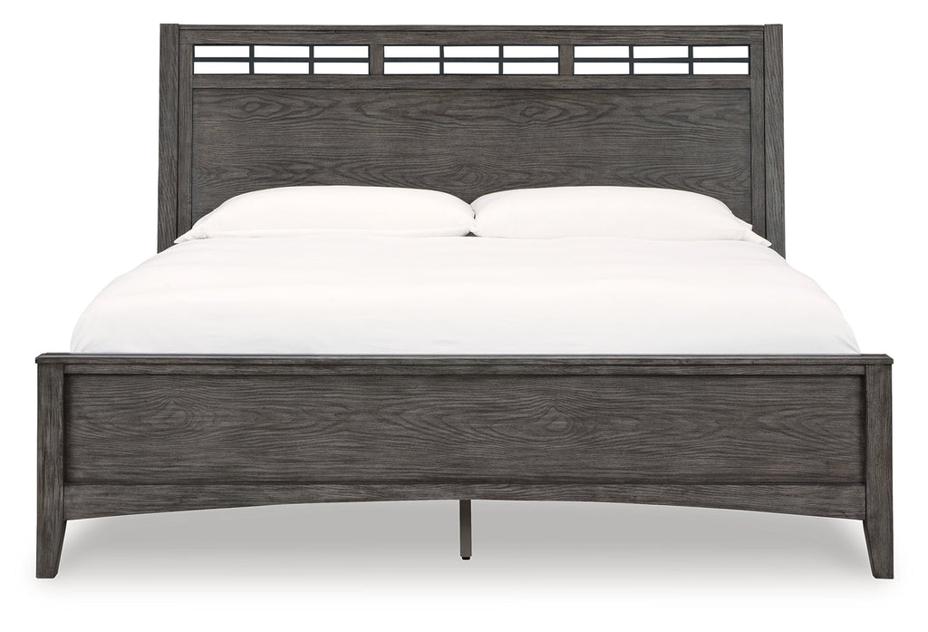 - Includes king/California king panel headboard, rails and footboard with slats