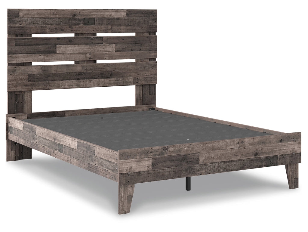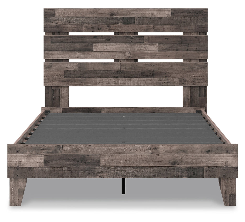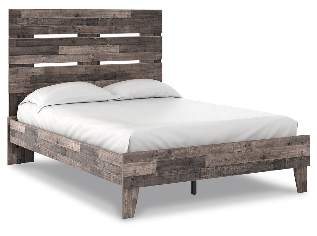 Streamlined design and a stunning finish come together in one simply extraordinary bed. This full panel bed is sure to impress with platform styling and a rich brown finish over replicated pine grain texture. Its mid-century profile is a nod to the past, while the updated finish keeps it solidly in the present.