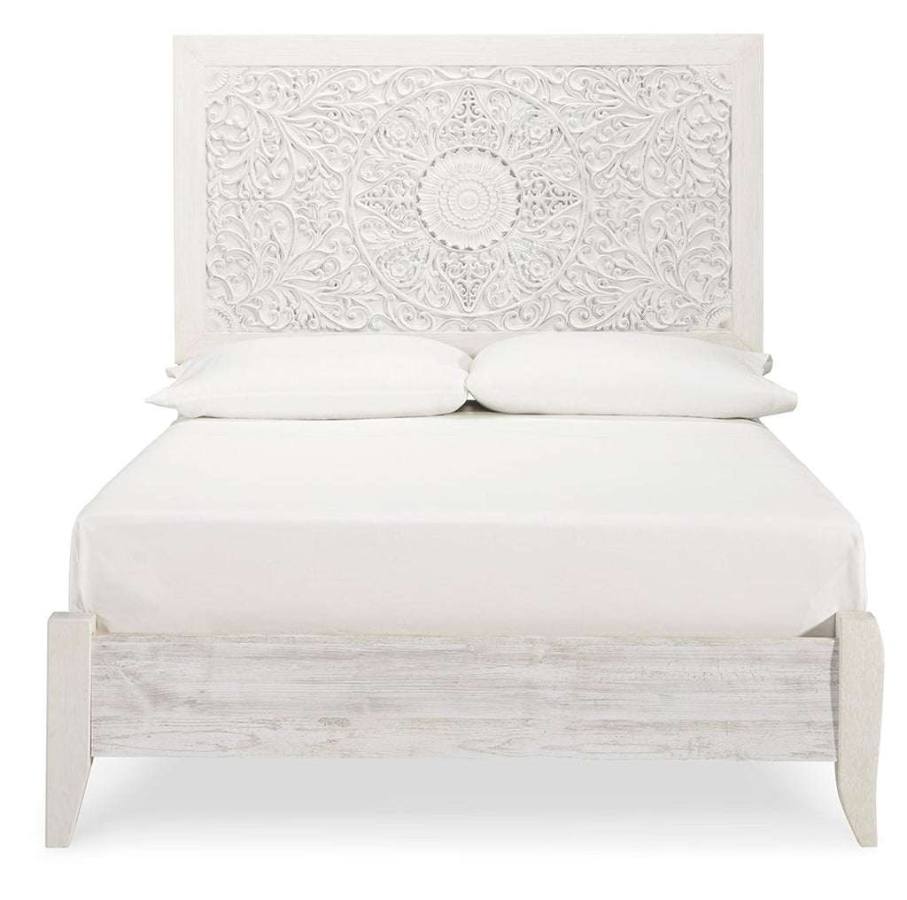 Your trendsetting mini-me can live out her elegant bohemian dreams with this full bed. Exquisite carved medallion pattern is a testament to true style. Charming whitewashed finish sets a foundation for bedding bursting with color. Headboard legs have four height options to grow with your child. Mattress and foundation/box spring available, sold separately.