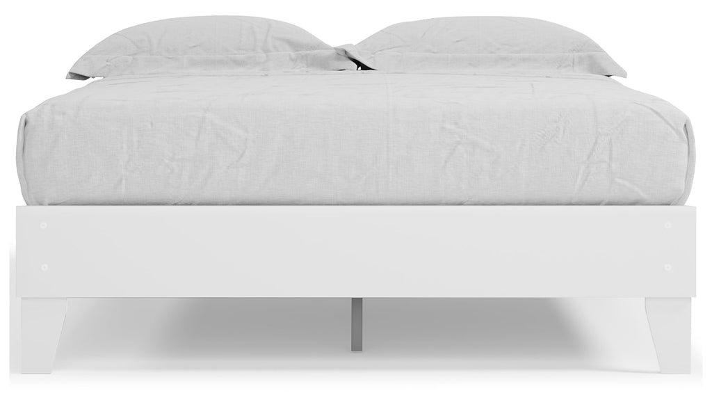 The perfect marriage of contemporary and casual style, this queen platform bed is a charming addition to your home. This bed keeps things simple with a crisp matte white finish. Best of all, it includes a footboard, rails and platform–no additional foundation or box spring needed.
