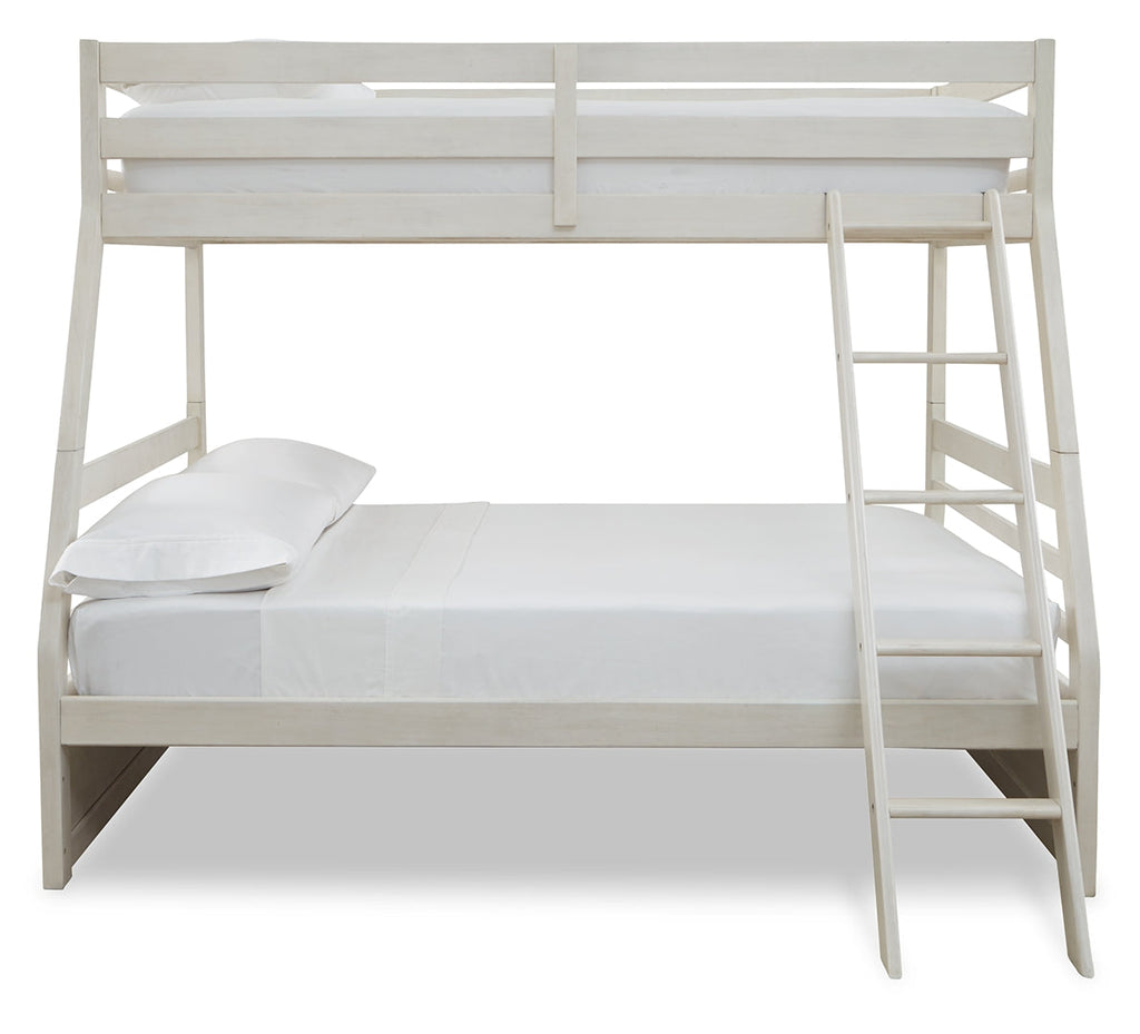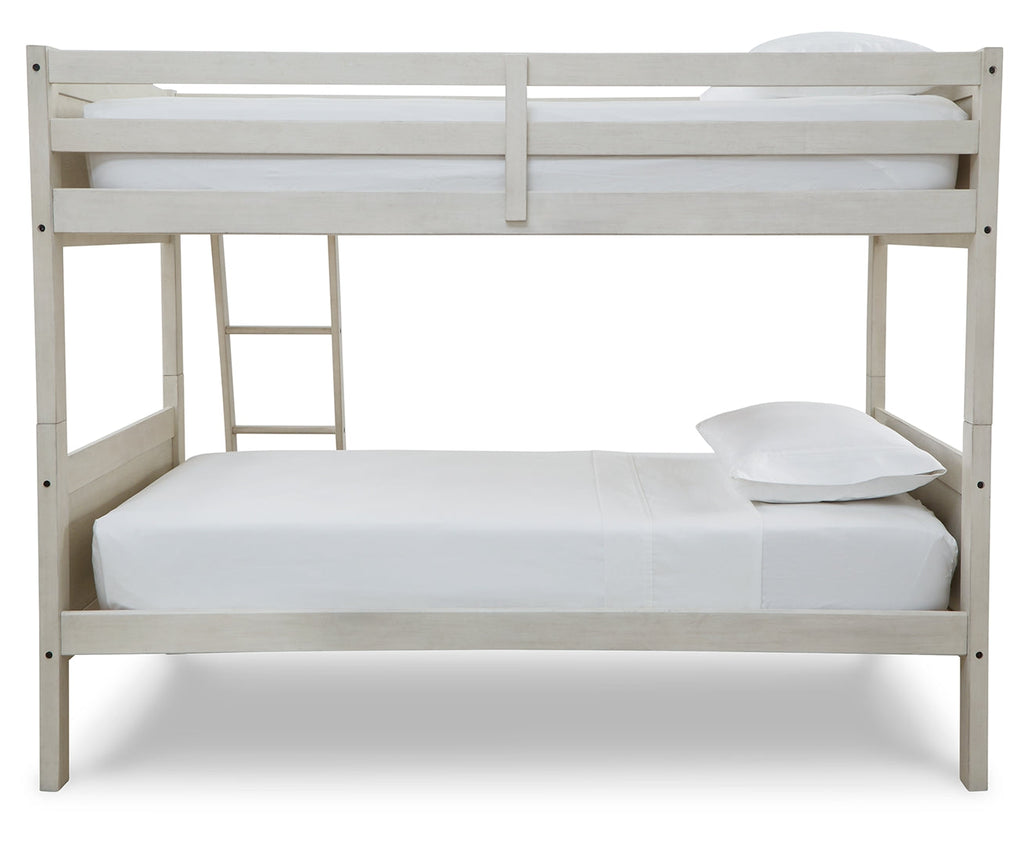 Elegant, timeless furnishings take your bedroom to the next level. Nothing does that better than this twin over full bunk bed. The antiqued white finish with a wonderful grain texture gives this youthful bed a sophisticated touch, making this the perfect piece to round out your tasteful bedroom.