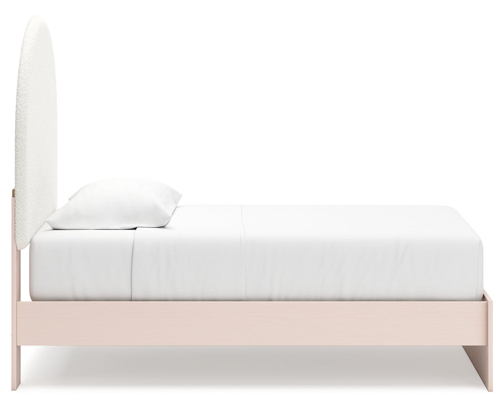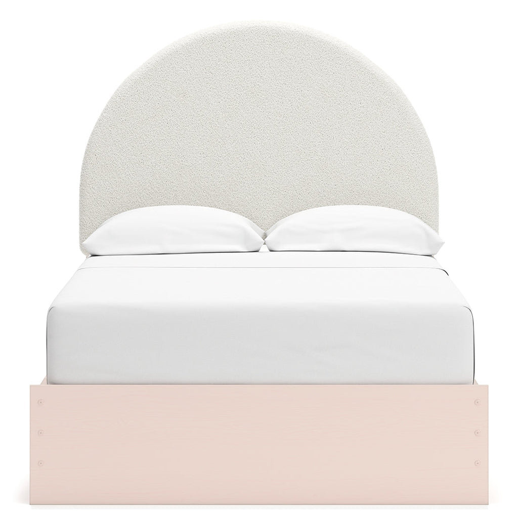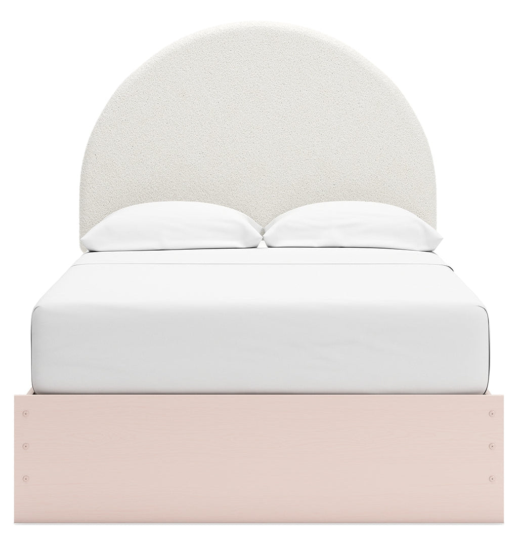 Pretty in pink. This full upholstered panel bed keeps the spirit of your home’s modern aesthetic while suiting all your young one’s needs. Its cozy-cute upholstery and subtle blush finish bring a playful, charming vibe to bedtime. Made for her and styled for you, it’s a lovely addition to a beautifully chic child’s bedroom.