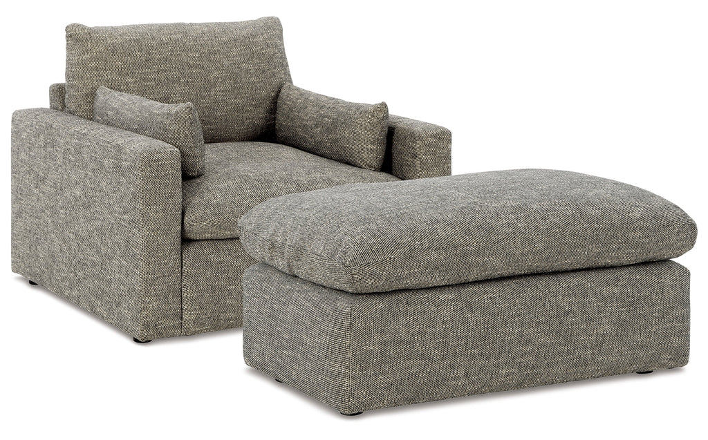 On the days when rest and relaxation seem out of reach, this seating package provides a positively plush perch. Its feather-fiber blend cushions invite you to float away in cloud-like comfort. Striking granite-hued upholstery and a streamlined frame grant this cozy set a look well-suited to contemporary spaces.