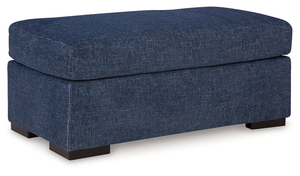 Casual contemporary style, meet carefree lounging. With this ottoman, you don’t need to sweat the small stuff. Thanks to its fresh navy hue, you can stay right on trend when you kick back and relax. Time for a touch-up? Easy-to-clean Next-Gen Nuvella™ fabric makes upkeep a breeze.