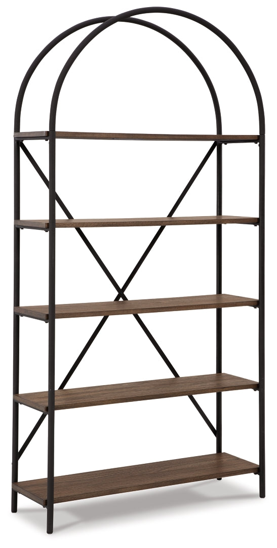 Put a personal touch into your space with the Galtbury on-trend bookcase, perfect for showing off framed photos, books and favorite objects. Defined by its distinctive mix of materials, this piece pairs an open metal frame in a bronze-tone finish with 5 fixed distressed wooden shelves for a look that’s right at home in an industrial, modern farmhouse or rustic setting.