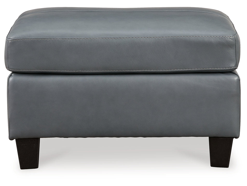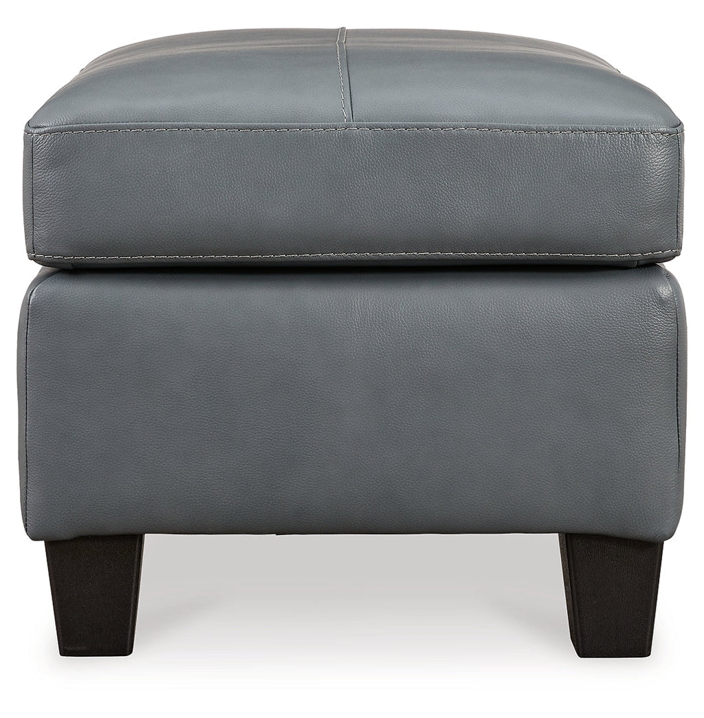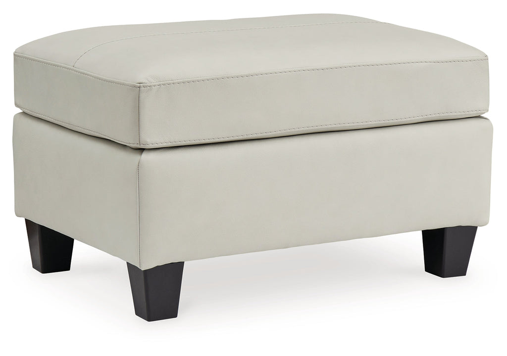 - Genuine leather typically covers the cushion top; skillfully matched faux leather covers the remaining areas