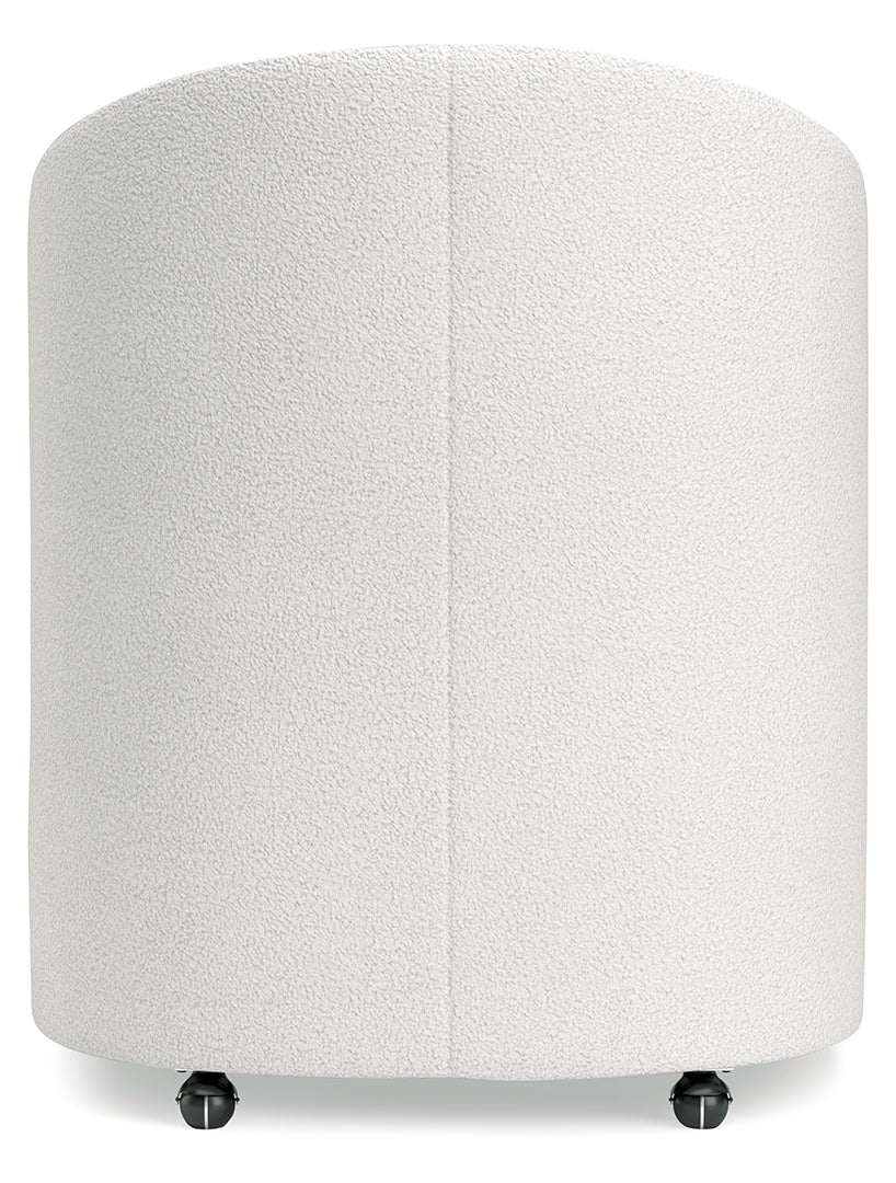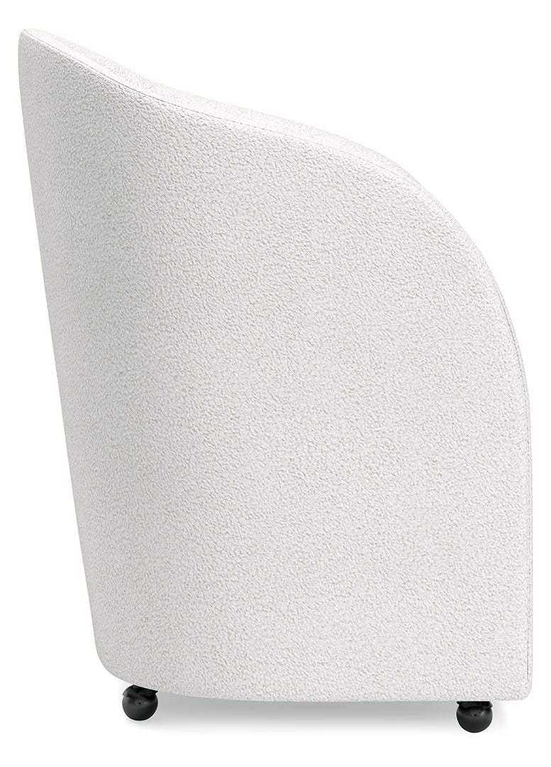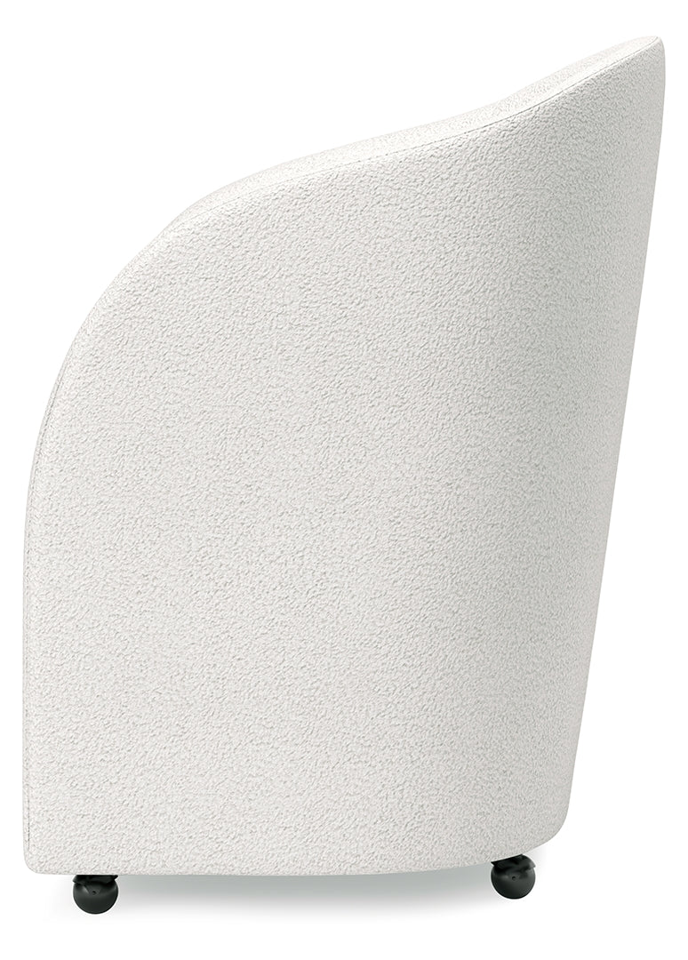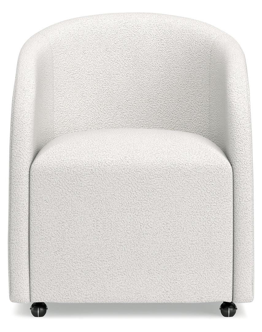 This fully upholstered desk chair makes a lasting impression in a simply stunning way. Its magnificent curves are enhanced with a neutral boucle upholstery that’s so pleasing to the eye. This bucket chair is the piece you’ve been looking for to elevate your contemporary home office. Plus, it’s set on casters so it’s easy to move around.