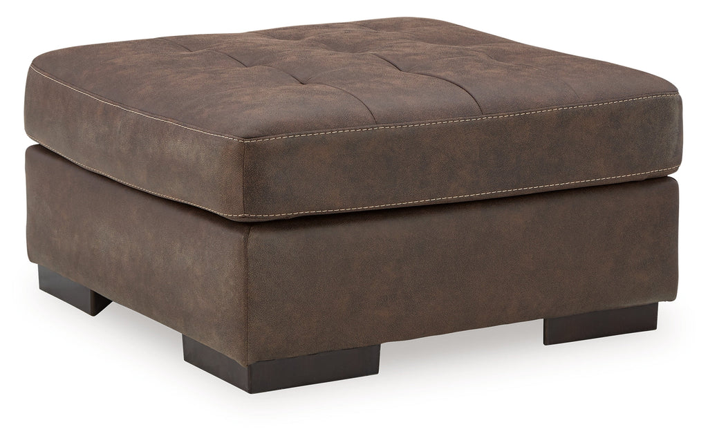 If you love the idea of a luxe look that won't break the bank, make yourself comfortable with this alluring oversized ottoman in walnut brown. Designed to look like the real thing, it's wrapped in a practical faux leather loaded with natural tonal variation and a soft hand feel. The accent ottoman is dressed to impress with jumbo stitching, tufted details and wide block feet for a clean-lined, modern touch that appeals to a contemporary taste.
