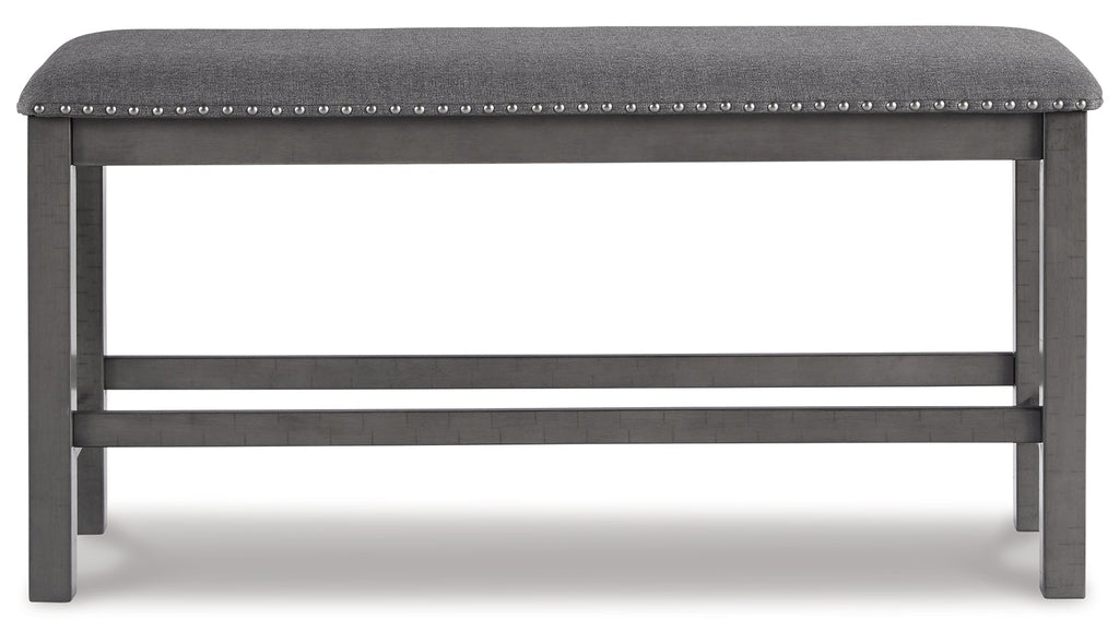 Going gray in the best possible way. This dining bench wows with an utterly on-trend smoky gray finish. Its softly cushioned seat with gray textured upholstery and nailhead trim will have you lingering a little longer at mealtime. Just a touch of distressing helps it fit right in with your modern farmhouse decor.