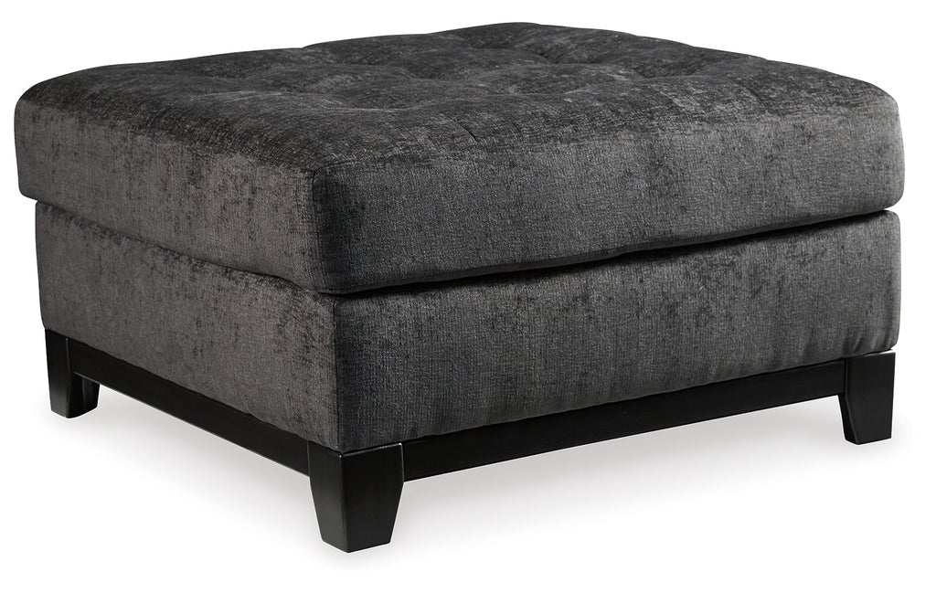 Stealing the show in a steel gray upholstery that's wonderfully plush and so on trend, this oversized ottoman takes center stage when it comes to comfort and contemporary style. Exposed feet with a faux wood finish complete the look.