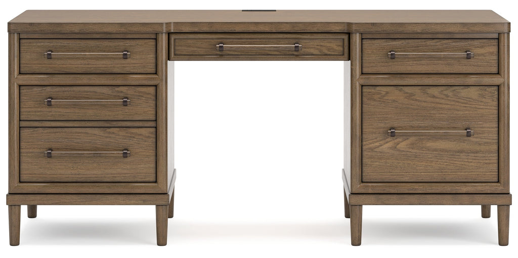 Give your mid-century modern decor that finishing touch with this home office desk and bookcase. Spacious drawers with unique wooden drawer pulls enhance the design with stunning style. This set takes minimalism to the max.