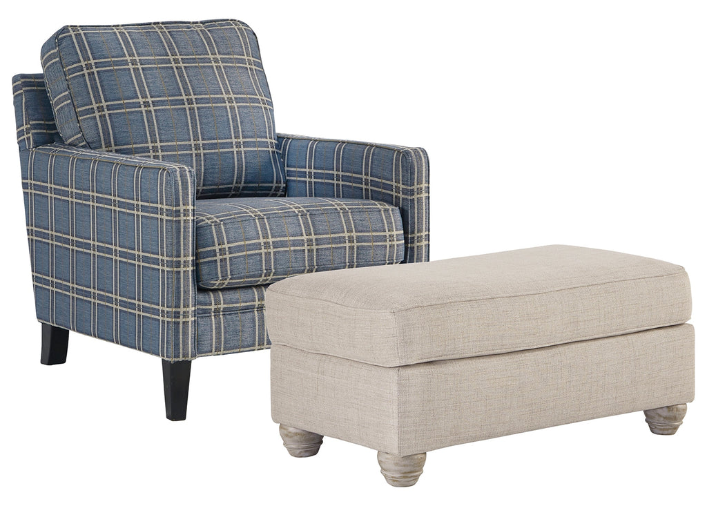 Don’t be shy—spread out and get comfortable on this accent chair and ottoman. Posh plaid accent chair with slim track arms is a timeless choice. Dressed in a modern and relaxed linen-weave upholstery, the sumptuous ottoman makes the perfect pairing.