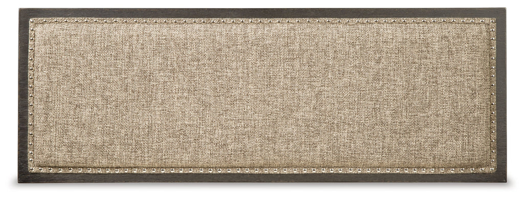 - Grayish brown polyester upholstery with nailhead trim