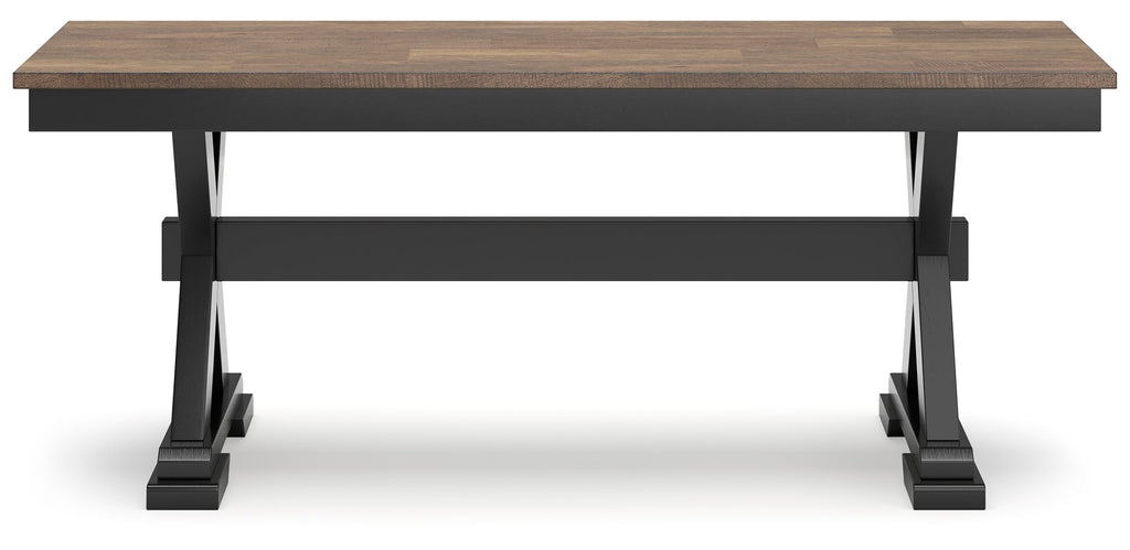 Raise the bar on modern farmhouse style with this dining bench. Its casual good looks are accentuated with a handsome two-tone finish. A sturdy silhouette adds a hearty element, whether your style is vintage, country or eclectic. This richly crafted seating option serves up charm wherever folks decide to take a seat.