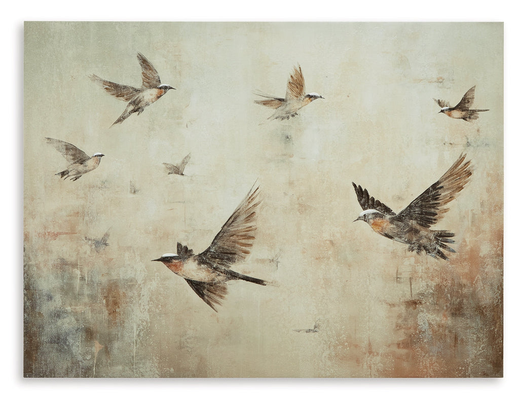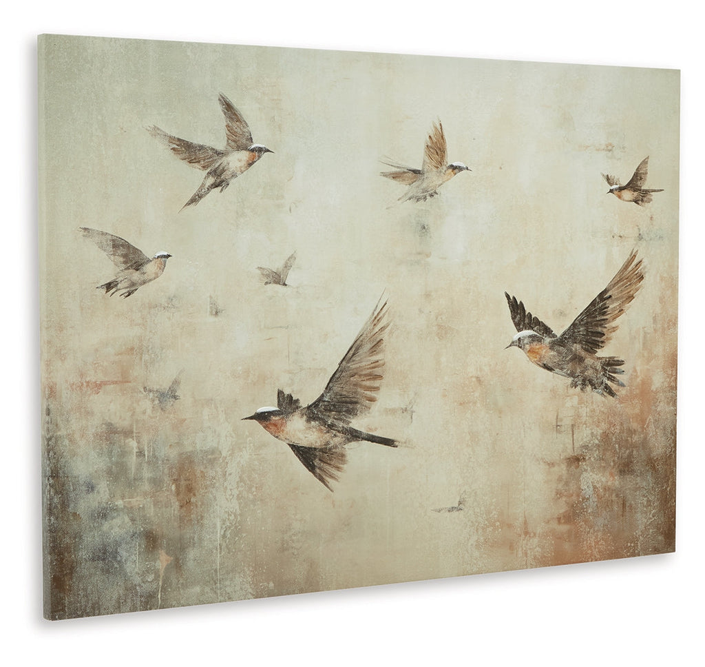 This canvas takes neutrals to the next level for a city-chic vibe. Hand-painted embellishments add textural interest while birds of a feather flocking together bring a touch of nature indoors. This striking piece of wall art is a standout in practically any space.