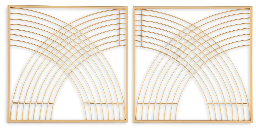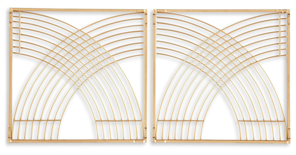 Add a spark of elegance to your home interior with this metal wall sculpture set. With their geometric design and goldtone finish, these accents offer a luxurious, elegant touch. Place the pair over a wood console table, entryway or outdoor living space to elevate the look of your modern or contemporary decor.