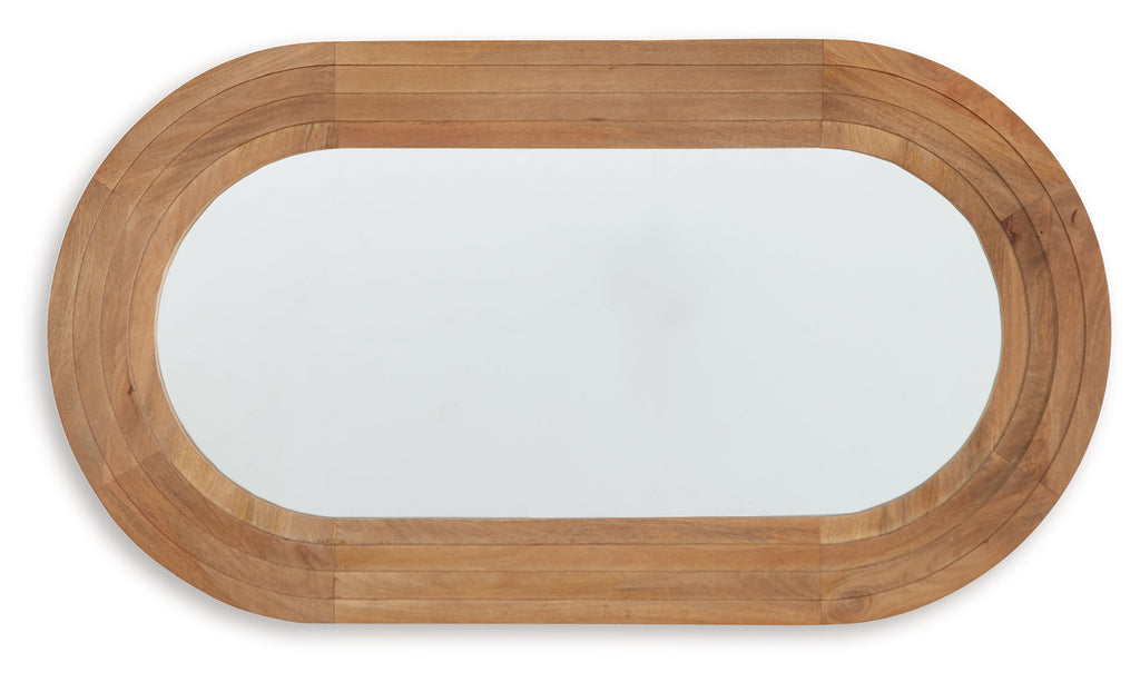 Framed with wood in a welcoming light brown finish, this accent mirror is a fresh take on functionality and style. Chic as a standalone accent in a bedroom or above a console in the entryway, it also brings light and visual variation to a gallery wall. And the ability to hang the mirror horizontally or vertically gives you additional versatility for staging.