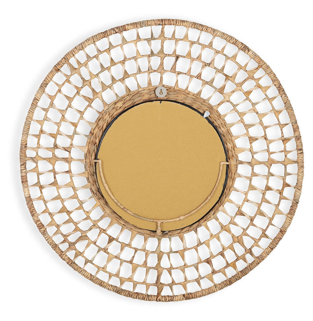 Bring some boho-chic style into your home with this round accent mirror. Made with natural water hyacinth, it features a stunning wicker border woven in various designs to create a charming focal point for any space.