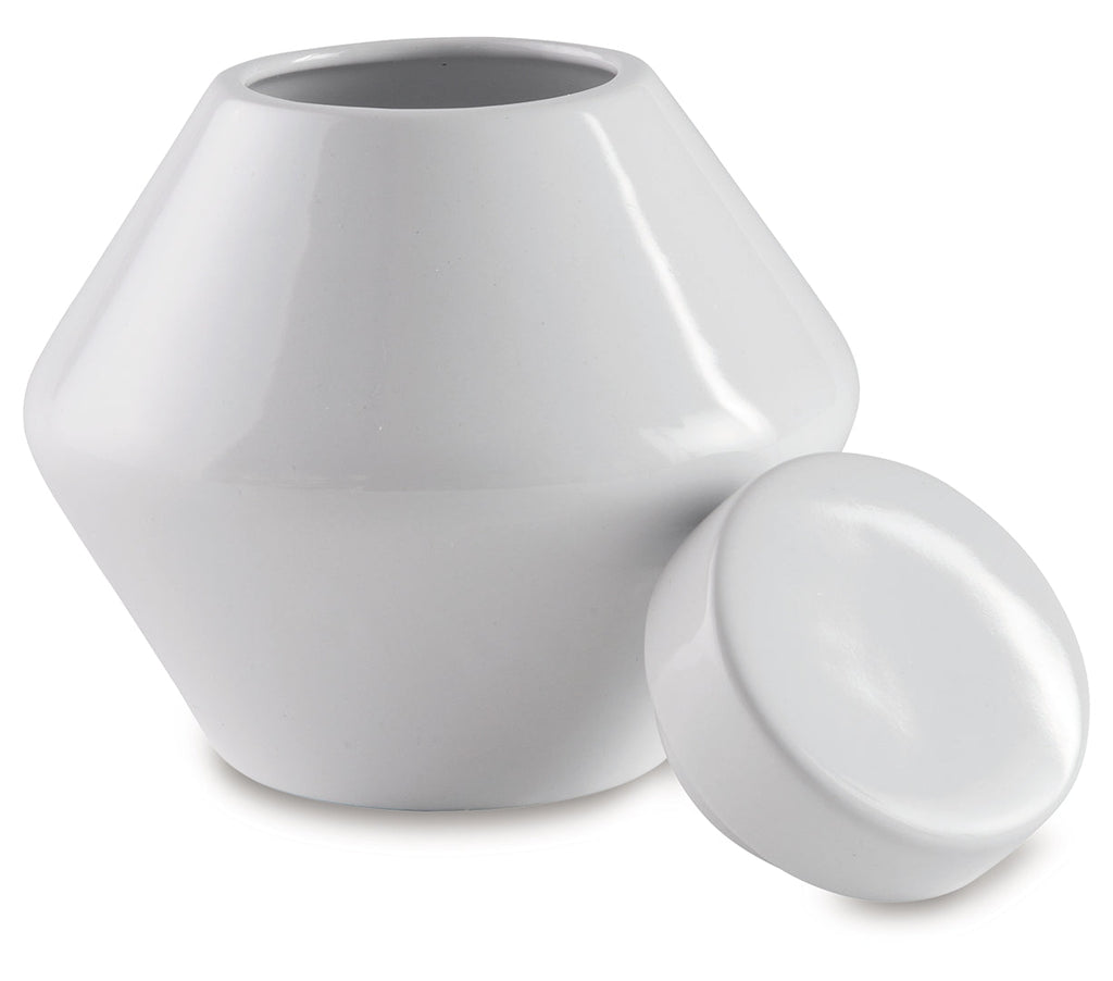 Show off your sense of curated good taste with this glazed ceramic jar with removable lid. Minimalistic and modern, this set is the embodiment of sleek style.