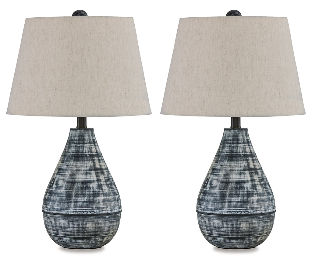This table lamp set presents soft lighting with a twist. Its antiqued black and taupe finish over metal offers a sensational effect. Rich with drama, this lamp creates the perfect lighting accent for casual spaces.