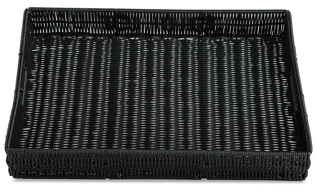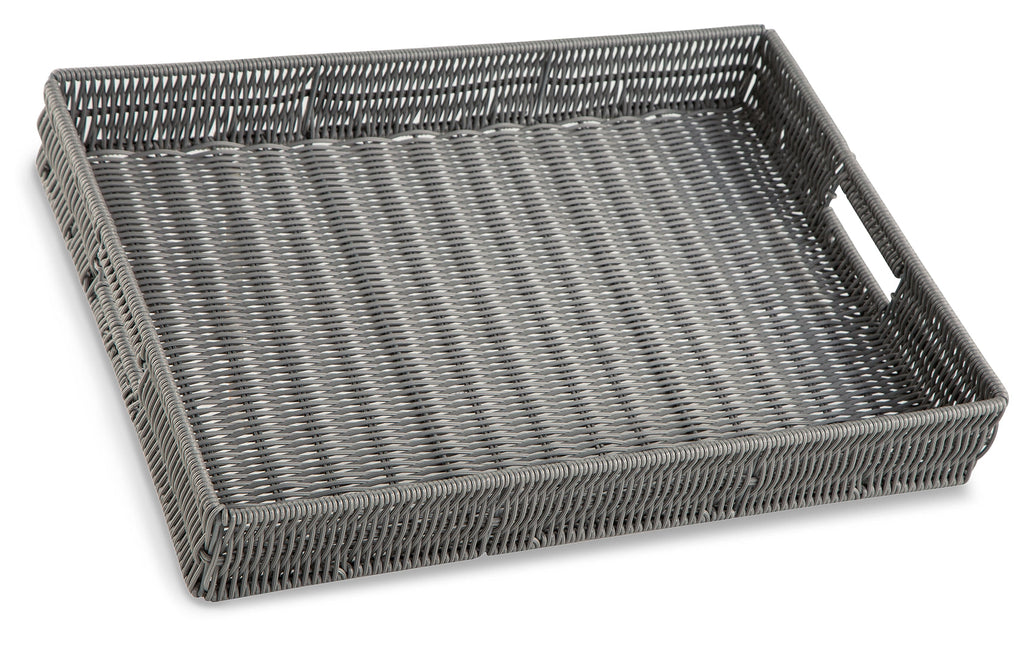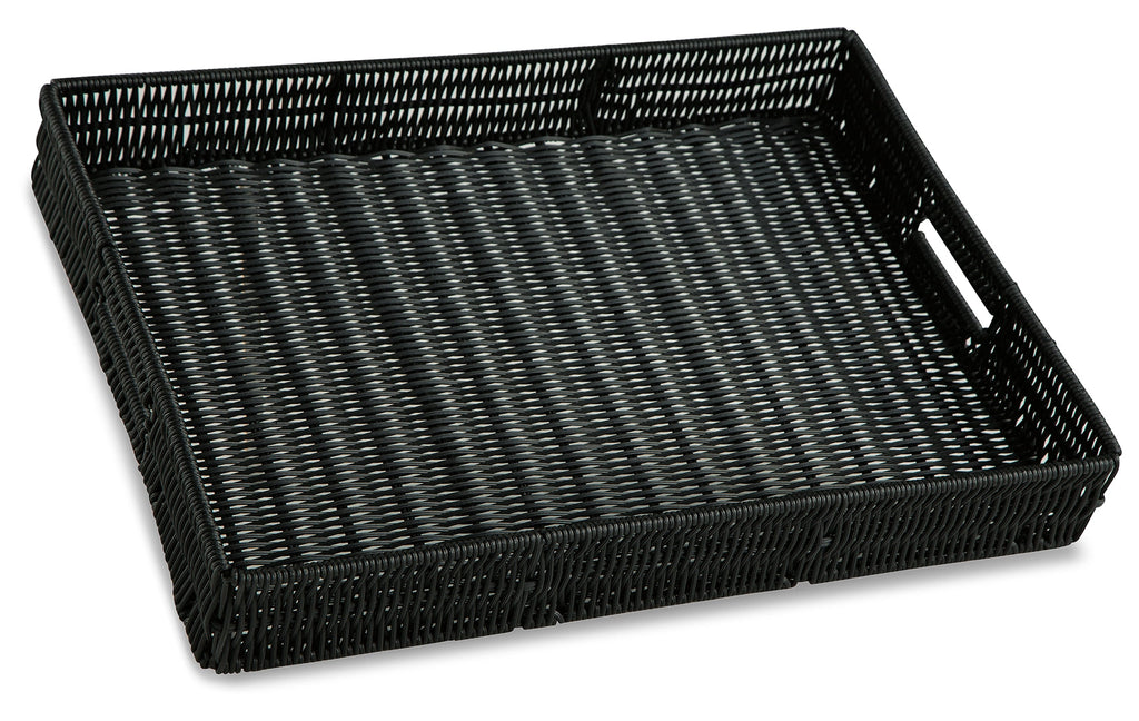 Complete the look of your restful retreat with this homey tray. Its black faux rattan acts as a versatile backdrop while holding other decorative elements. On its own, this chic indoor/outdoor piece punctuates your tabletop decor with its versatile style.