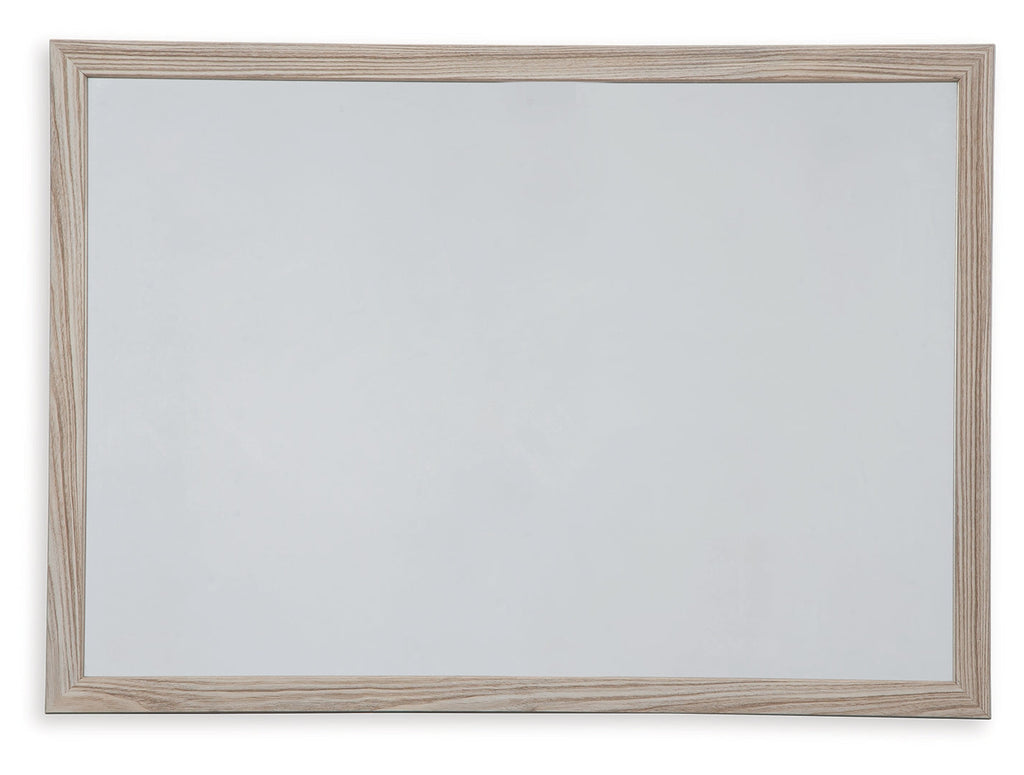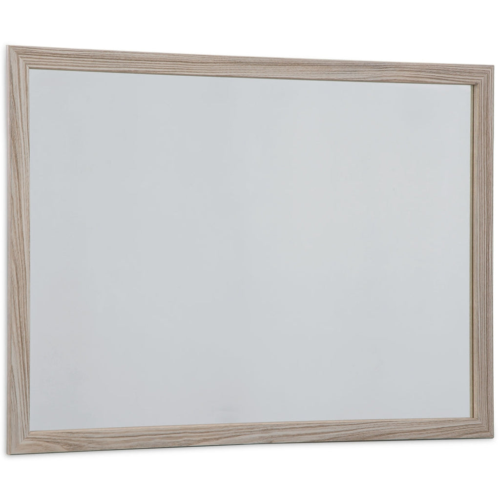 Modern meets neutral and sophisticated in this mirror. Its clean lines wake up your bedroom with eye-catching appeal. The natural finish and subtle replicated wood grain speak casual simplicity, creating a smart and stylish bedroom retreat. A refreshing take on style, indeed.