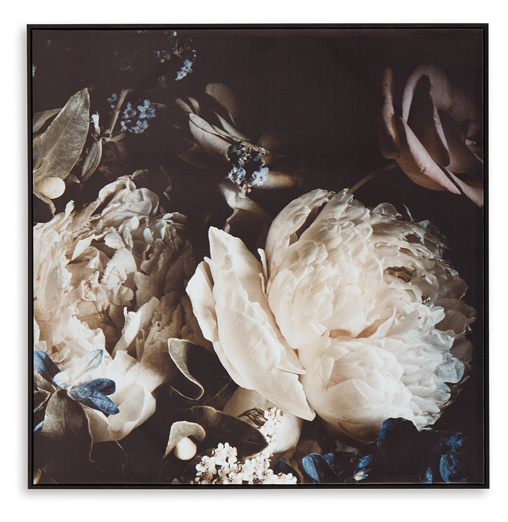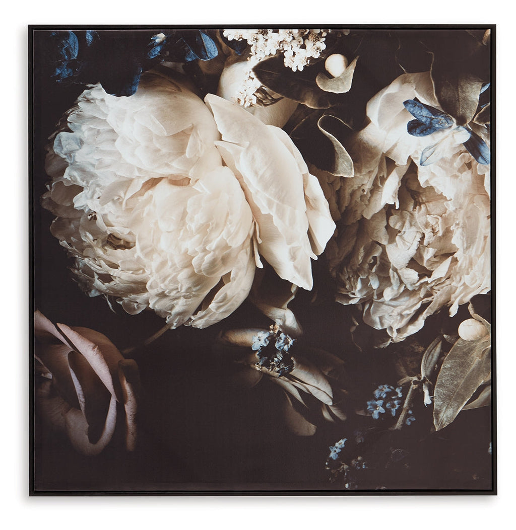 Fall in love with florals. This wall art has a feminine feel, giving the viewer a close look at the delicately unfolding petals of assorted flowers. Its blend of light and dark hues suits a variety of spaces, from casual to contemporary.