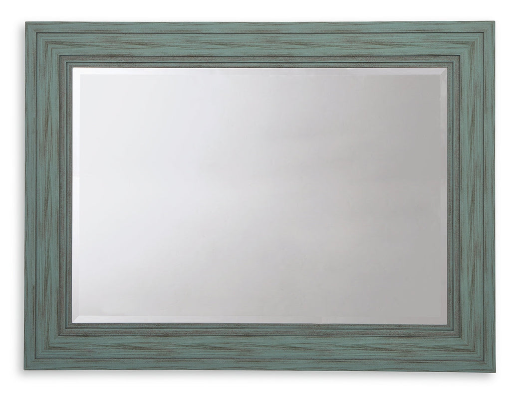 Transform your space into a vintage casual retreat. This floor mirror adds dimension while remaining versatile, with the ability to hang both vertically and horizontally. The antiqued teal finish adds a pop of color, making this mirror a must-have.