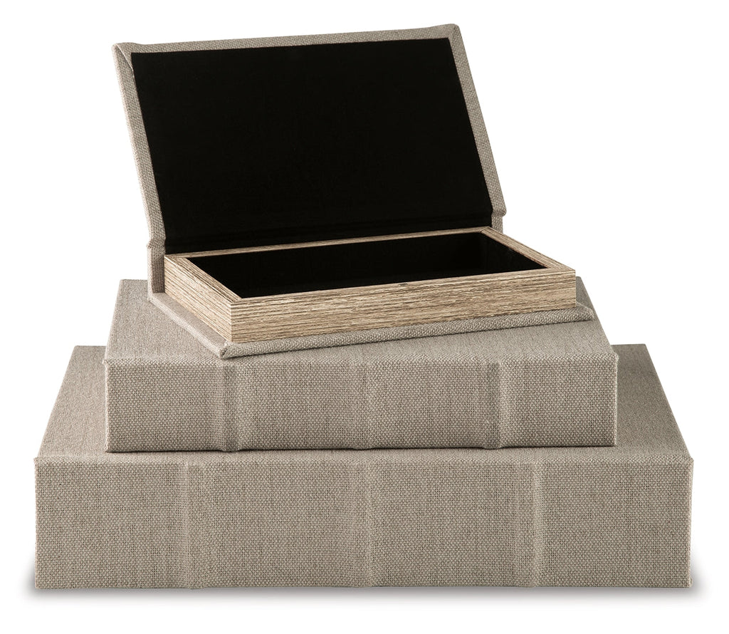 This set of three keepsake boxes makes storage so quietly understated. The beige linen cover is complemented inside with a black velvet lining. The perfect place for your dearest keepsakes, this set adds a touch of casual elegance to your decor.