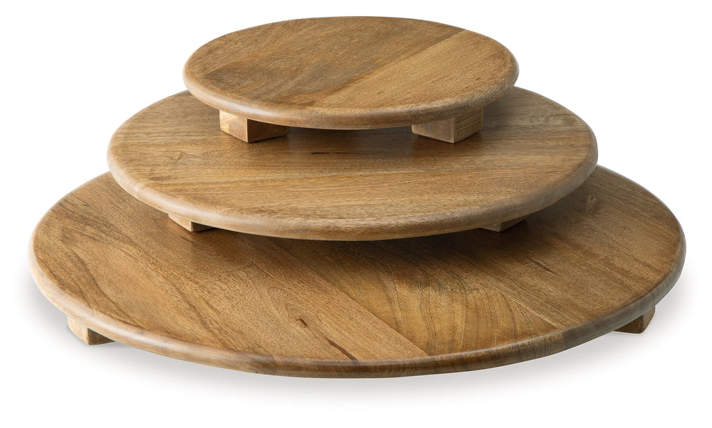 Serving up style has never looked so chic. Naturally beautiful, this tray set impresses with honey-hued wood full of warm, rich character. With three different sizes, you can use the tray that best suits your charcuterie board or hors d'oeuvres spread. Or switch up your display by stacking the trays together for a tiered look.