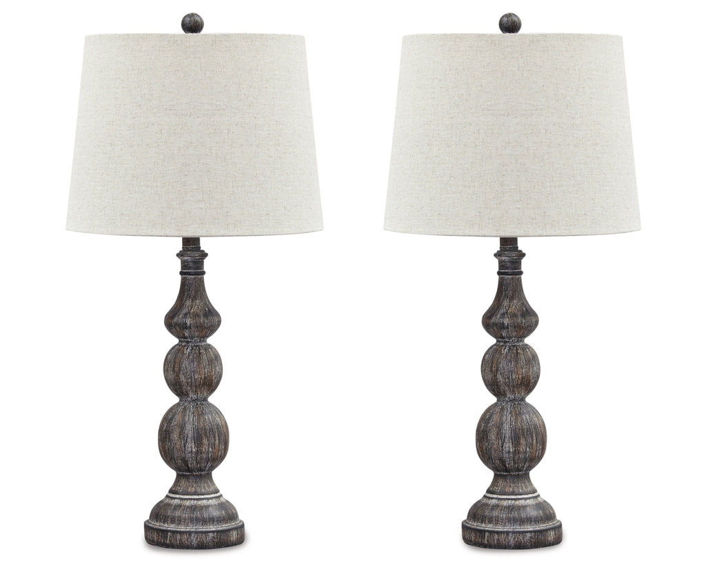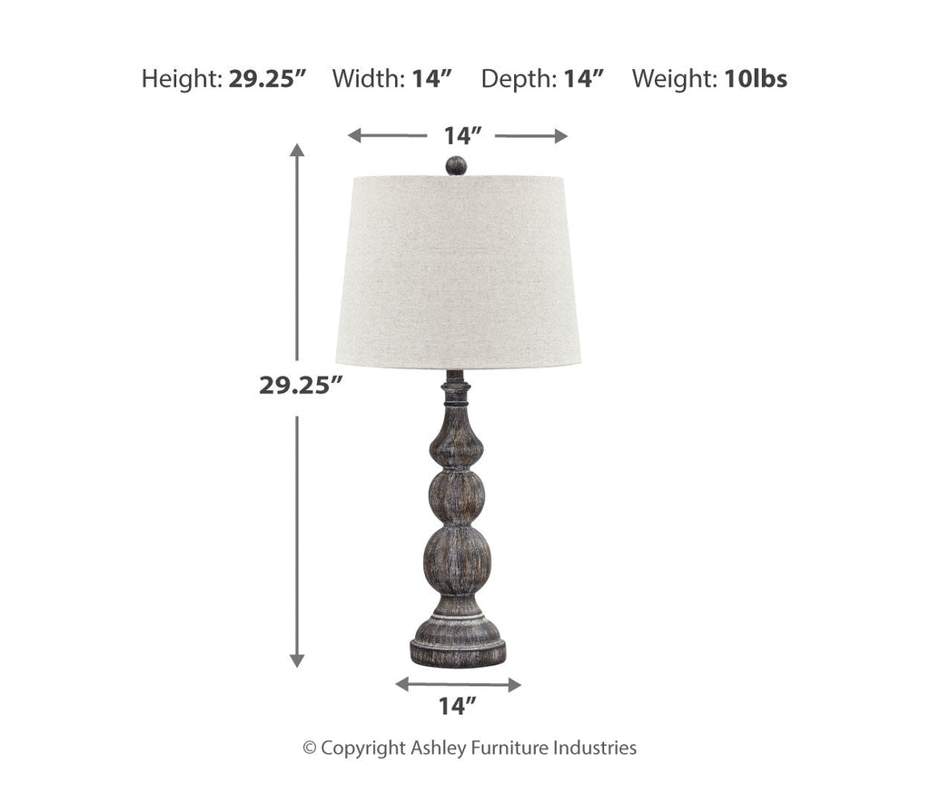 Light up your room in timeworn sophistication with this handsomely crafted table lamp. A black finish with two-tone gradations moves your eye from top to bottom. The silhouette of the lamp’s turned base contrasts beautifully against the neutral drum shade.