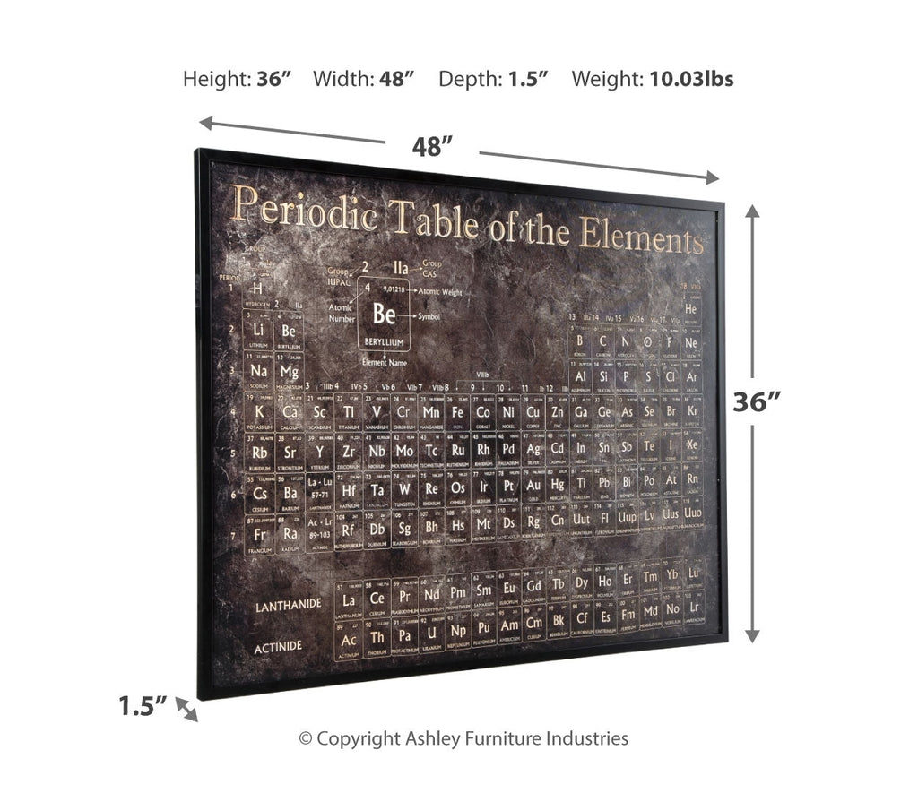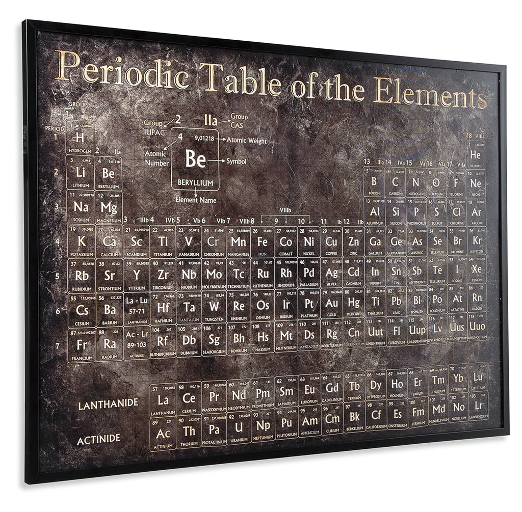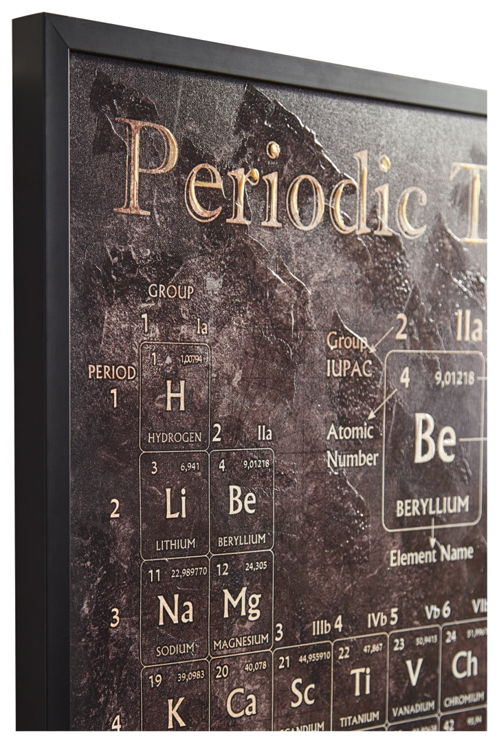 This black and white artwork is just the right formula for showcasing your brilliant sense of style. The gallery wrapped canvas of the periodic table features hand embellishing for an authentic look.