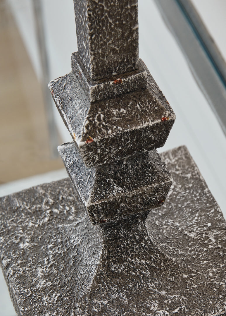 - Distressed gray finish