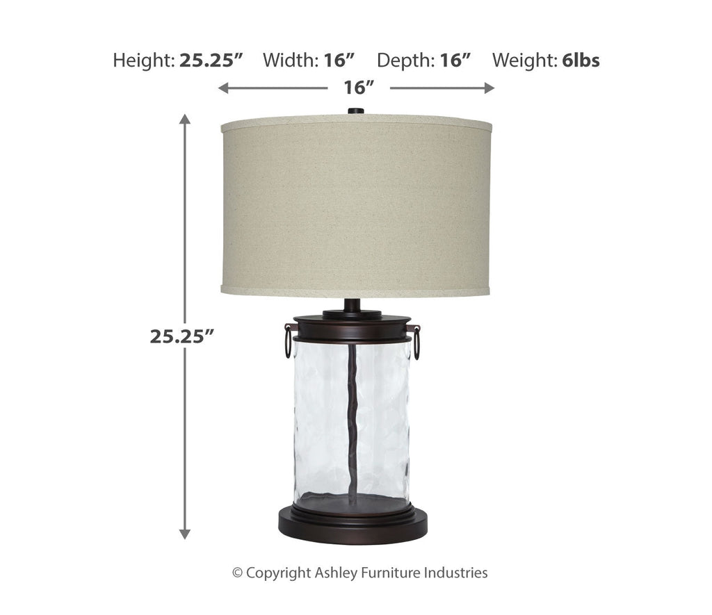 Light waves ahead. Wowing with a clear wave glass design, this table lamp is delightfully chic and unique. Classic drum shade is perfectly in tune with cylinder shape base.