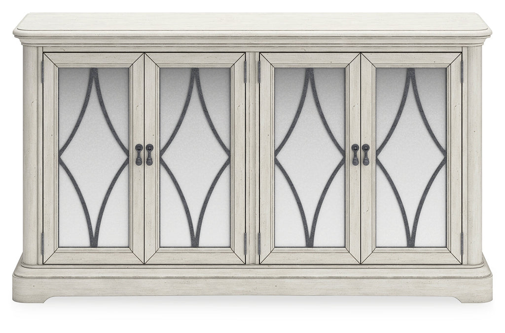 - Antiqued white painted finish