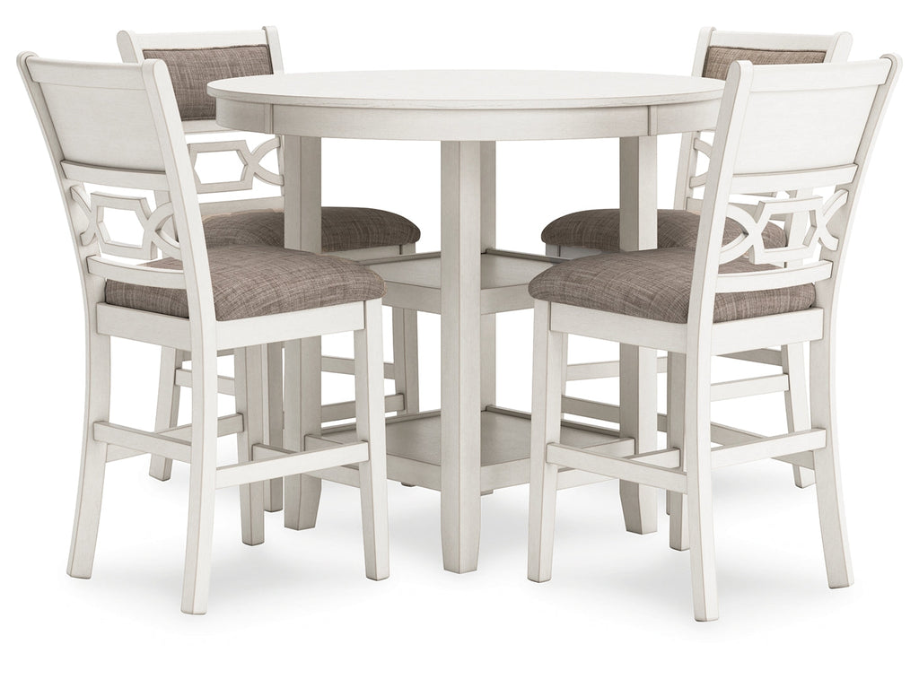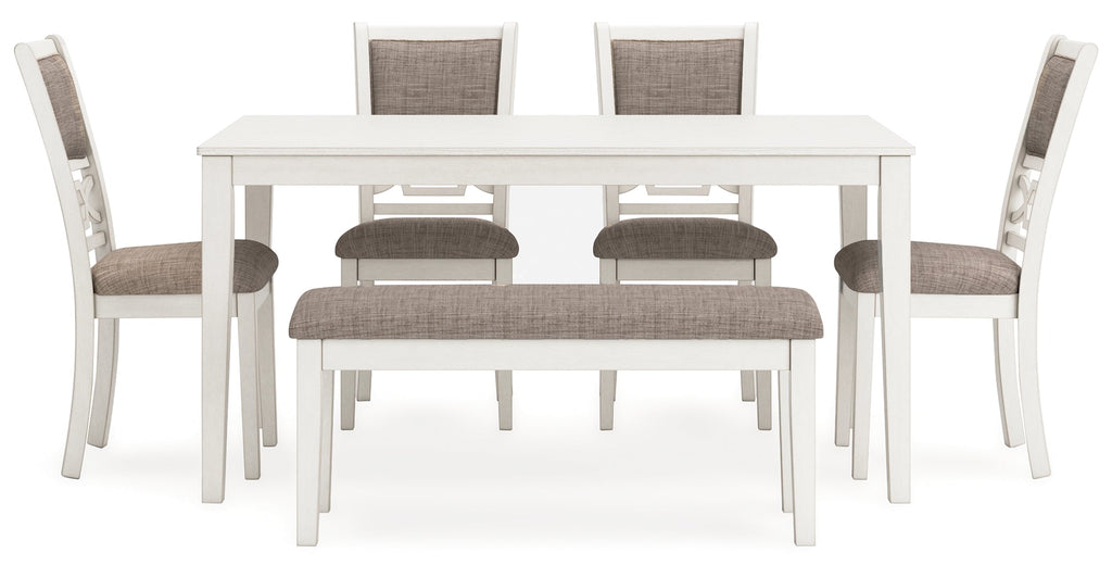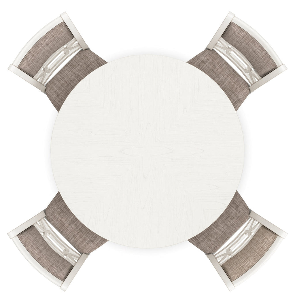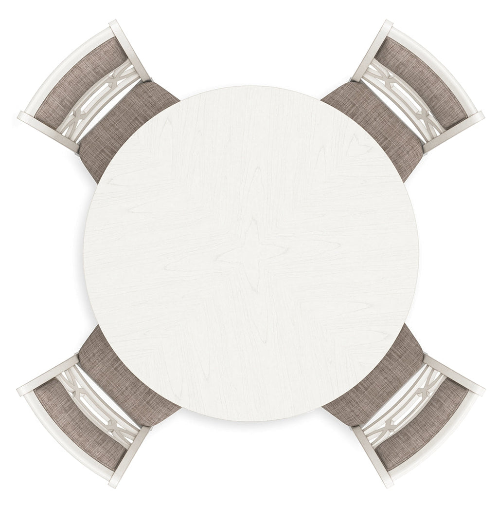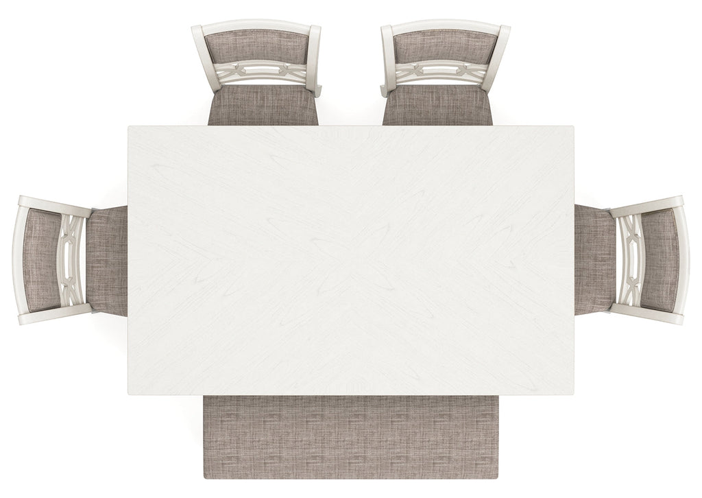 Come together for a delightful dining experience. Chic and relaxed, this dining table and chair set effortlessly captivates with its elegant simplicity. The timeless design pairs a crisp white hue with gray textured upholstery. It's a fresh addition everyone will notice.