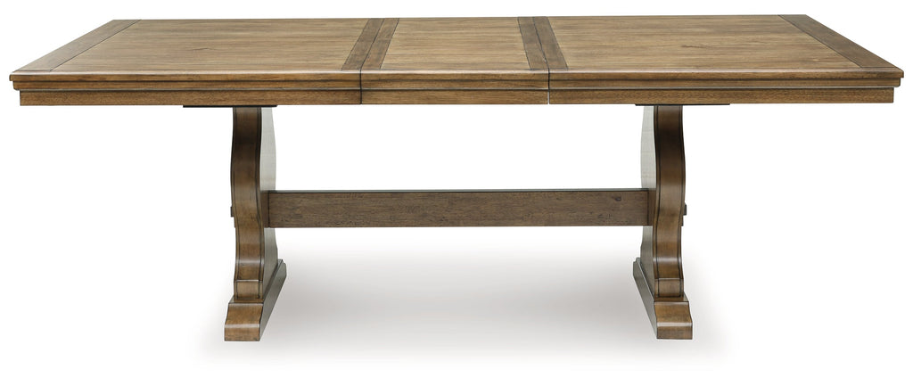 - Double-pedestal trestle base with stretcher