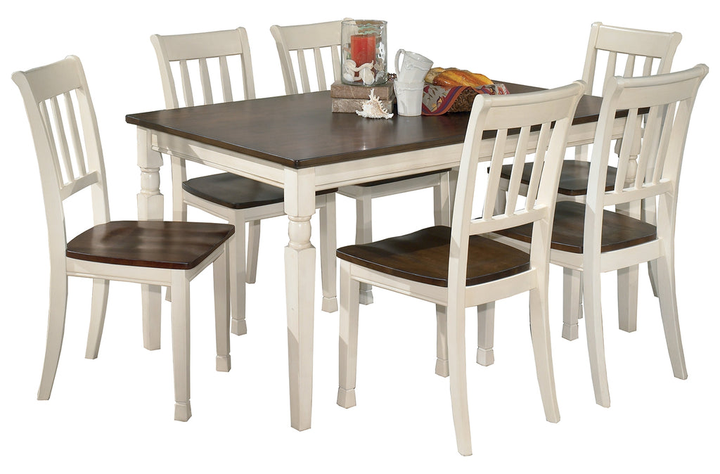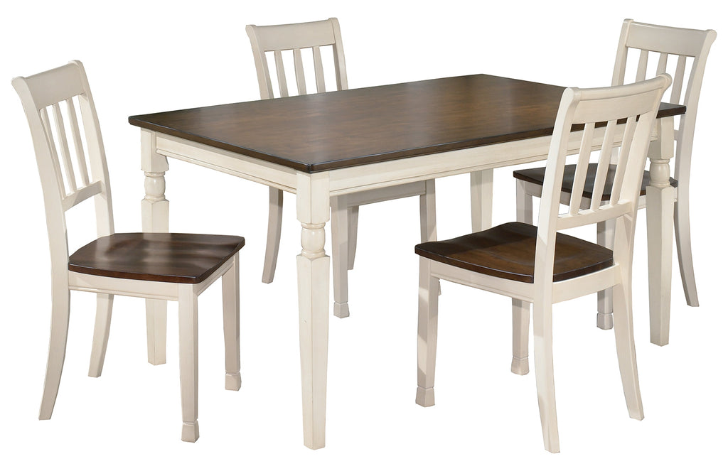 Incorporate cottage-cool warmth in your dining space with this 5-piece dining room set. The spacious rectangular dining table and four rake back side chairs with two-tone finish serve up twice the charm and character.