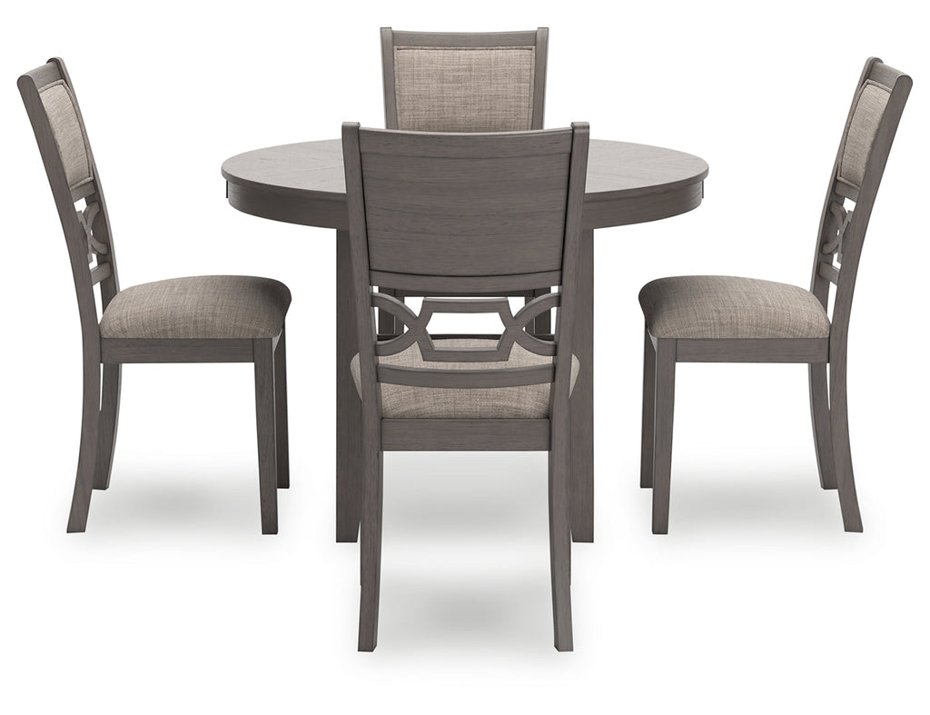 - Includes dining table and 4 upholstered chairs