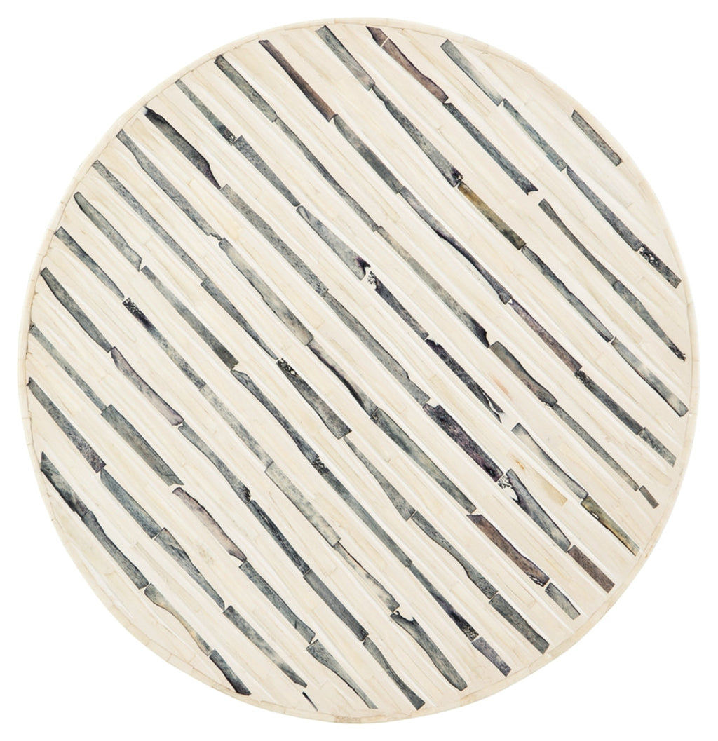 Understatedly cool in its construction, this accent table adds a subtle sense of edginess to your modern decor. Its bone inlay in cream and black creates visual intrigue on the top, balanced out by the sleekly styled black base.