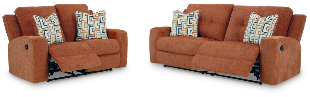 This seating package invites you to a luxuriously soft lounging experience. Its chic hue fits right in with contemporary color palettes. Tufted backs keep the look right on trend. Balancing style and function, the set's pull tab reclining effortlessly takes you to relaxation mode.