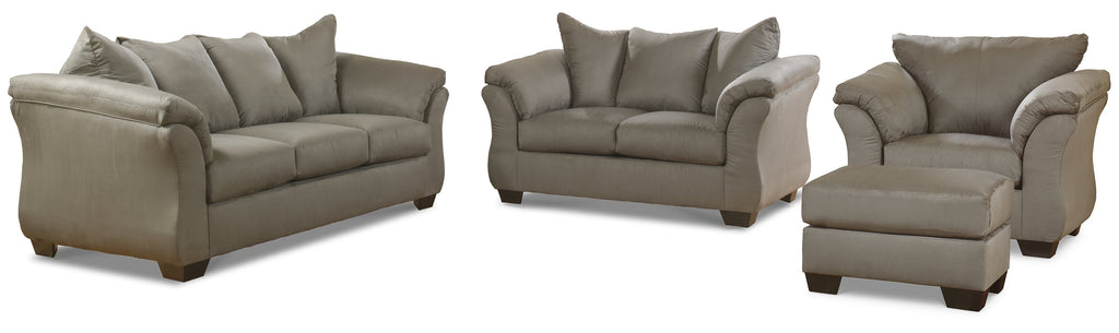 Talk about fine lines and great curves. That’s the beauty of this sofa and loveseat set—made to suit your appreciation for clean, contemporary style. Striking flared profiles, comfy pillow top armrests and an ultra-soft upholstery that holds up to everyday living complete this fashion statement.