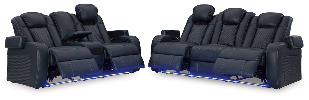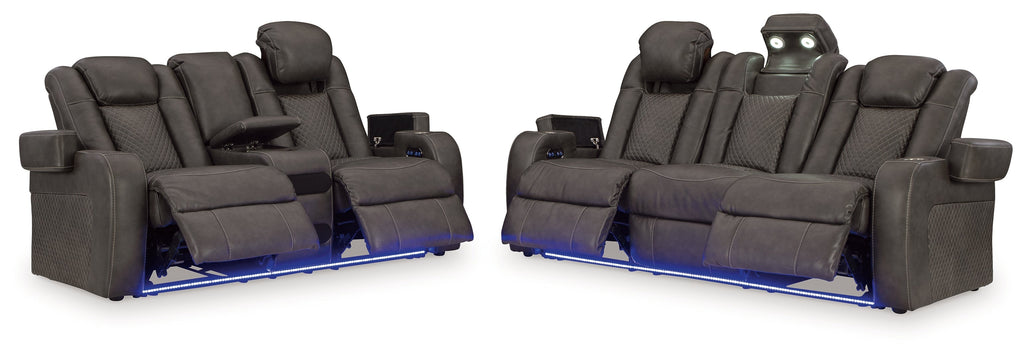 This power reclining seating set goes beyond basic comfort. It upgrades the everyday, turning your living room into an entertainment hub. Don’t want to leave your seat? Keep essentials in reach with assorted charging options, cup holders and storage arms. You can create an even cooler vibe for family movie nights and friendly gaming matches with LED lights. And your sleek style isn’t compromised—its diamond stitching and streamlined arms recall the aesthetics of luxury automobiles.