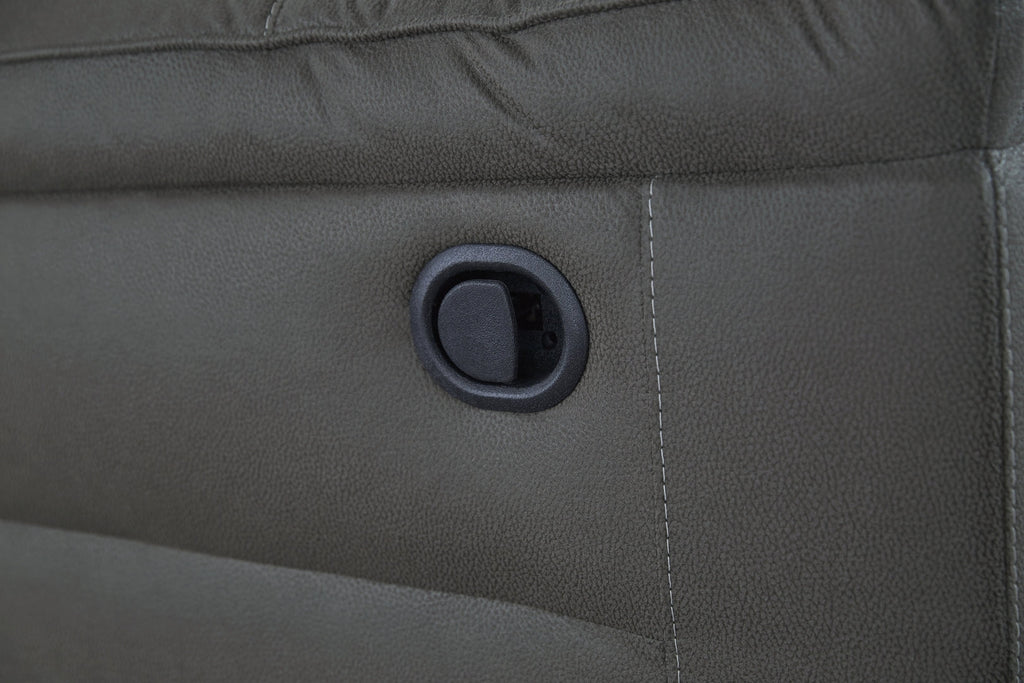 Rustic character comes forth in this reclining sofa and loveseat set. Designer stitching adds a fashion-forward touch to its soft cushions. Faux suede fabric speaks to your knack for superior-quality materials. The high backs provide ample support as you get off your feet for a bit. And with a simple pull of the tab, you’ll be easing back into relaxation. Infinite levels of comfort await.